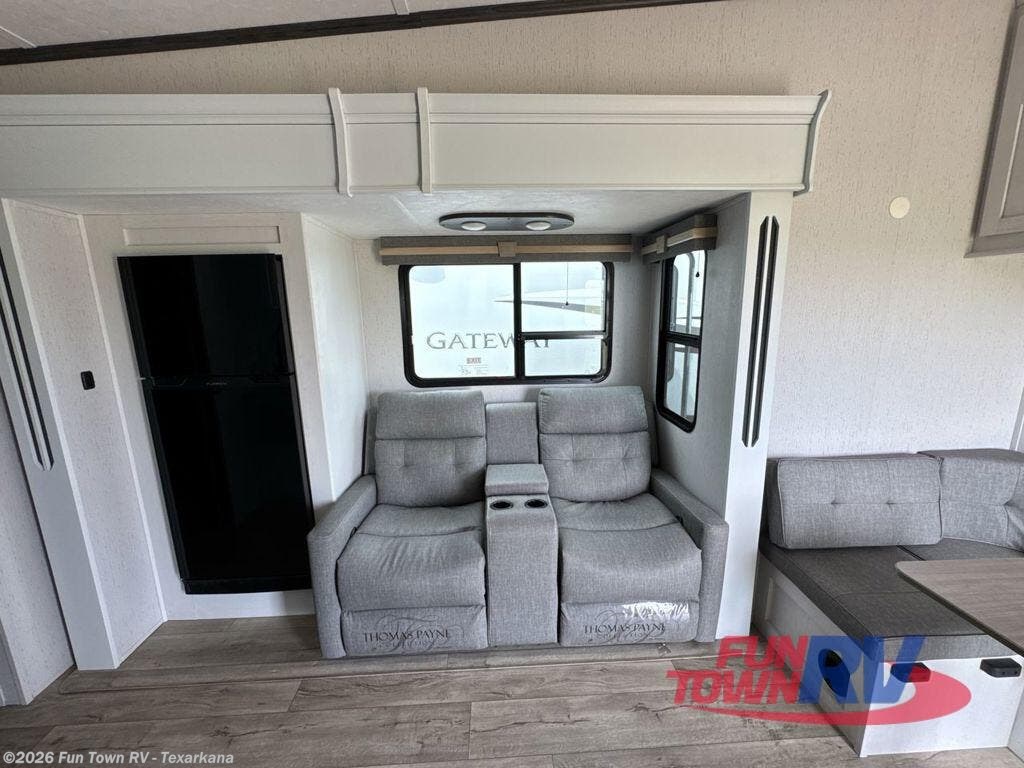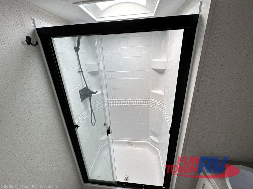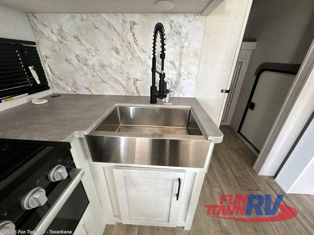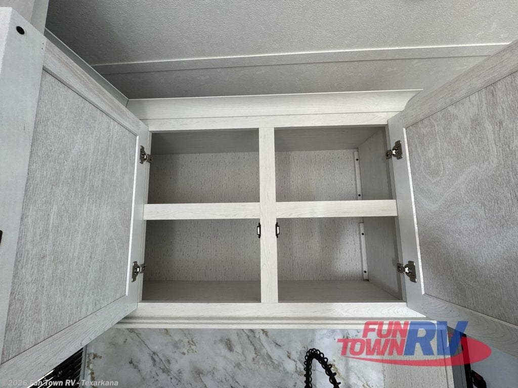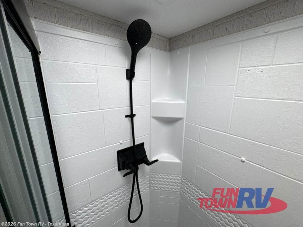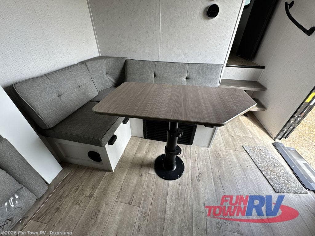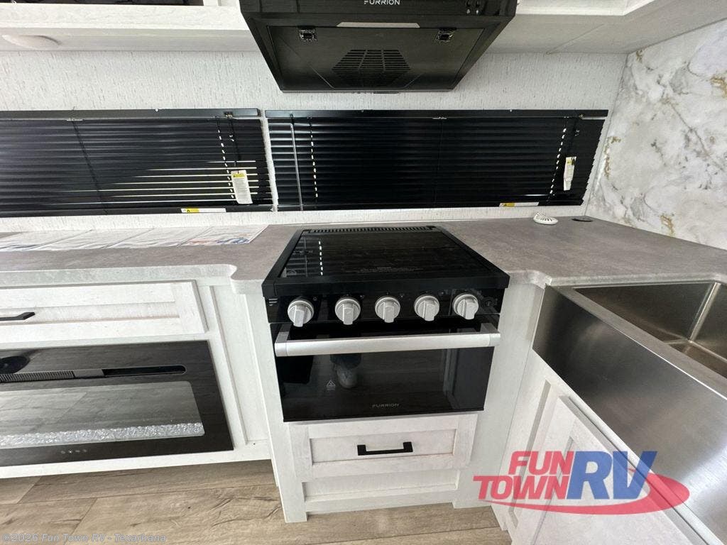 You'll enjoy every minute in this cozy fifth wheel. There is a front private bedroom with a queen bed, dual closets, and a closet with washer and dryer prep that will make your space feel just like home. Your guests will love having the rear private bunkhouse to themselves with three bunks, and there is a full bath on board so everyone can stay clean throughout your trip. The theater seating slide out in the living area/kitchen will provide more space to move about, plus there is a cafe dinette for more seating and dining space. An extra guest or two could even sleep on these areas! The chef of your group will find a full kitchen with a farm style sink, 10 cu. ft. double door refrigerator, and three burner range with a 21" oven.