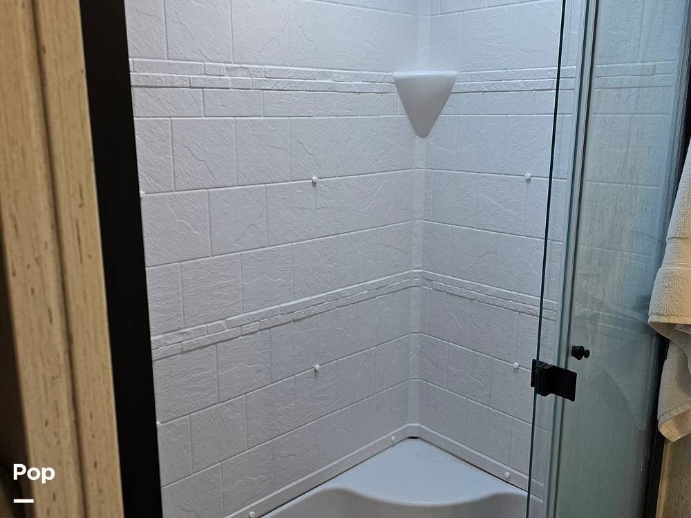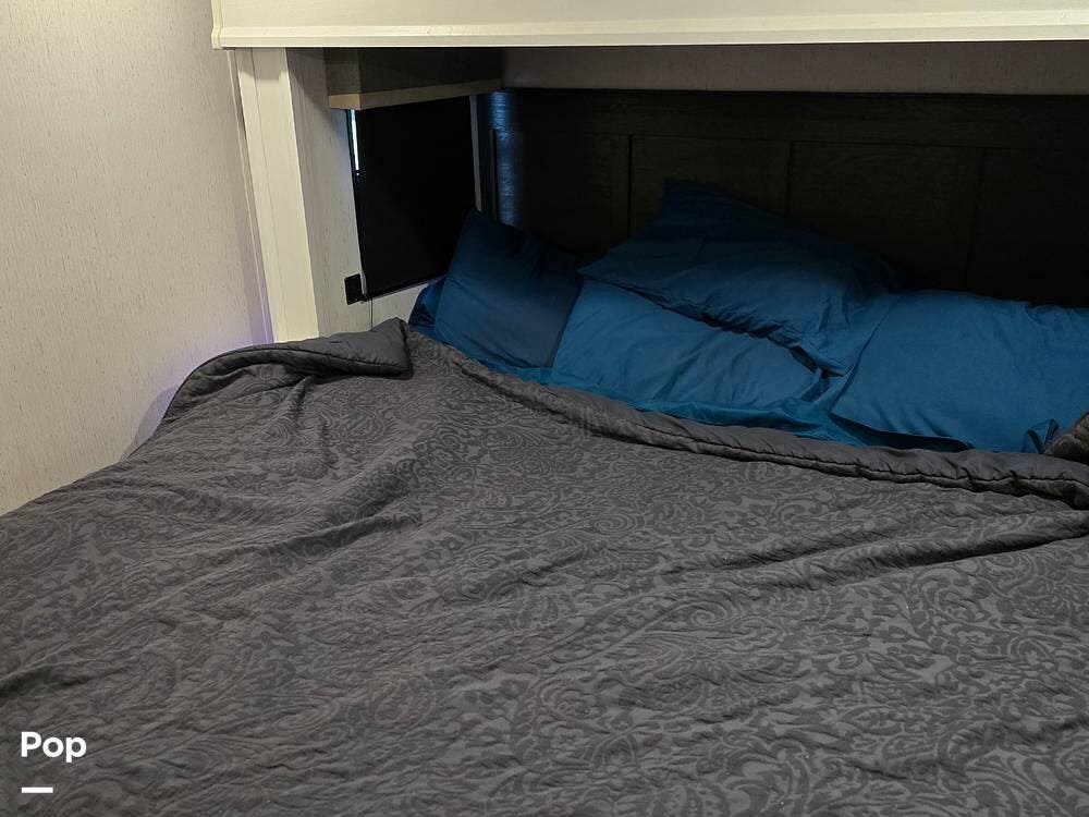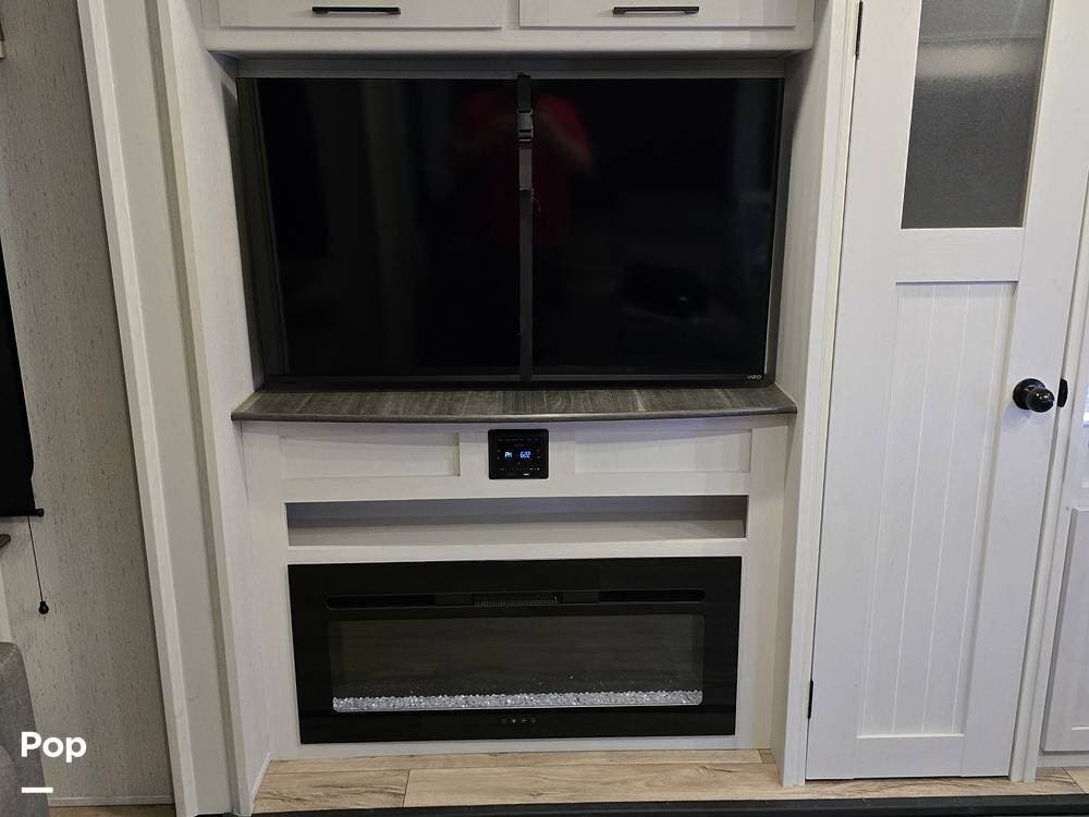 Enjoy both theater seating and a sleeper sofa in the main living space. The owner added a smart TV, but still has the original installed basic TV provided by the manufacturer. So you can cozy up to the fireplace and enjoy movie night or your favorite shows.