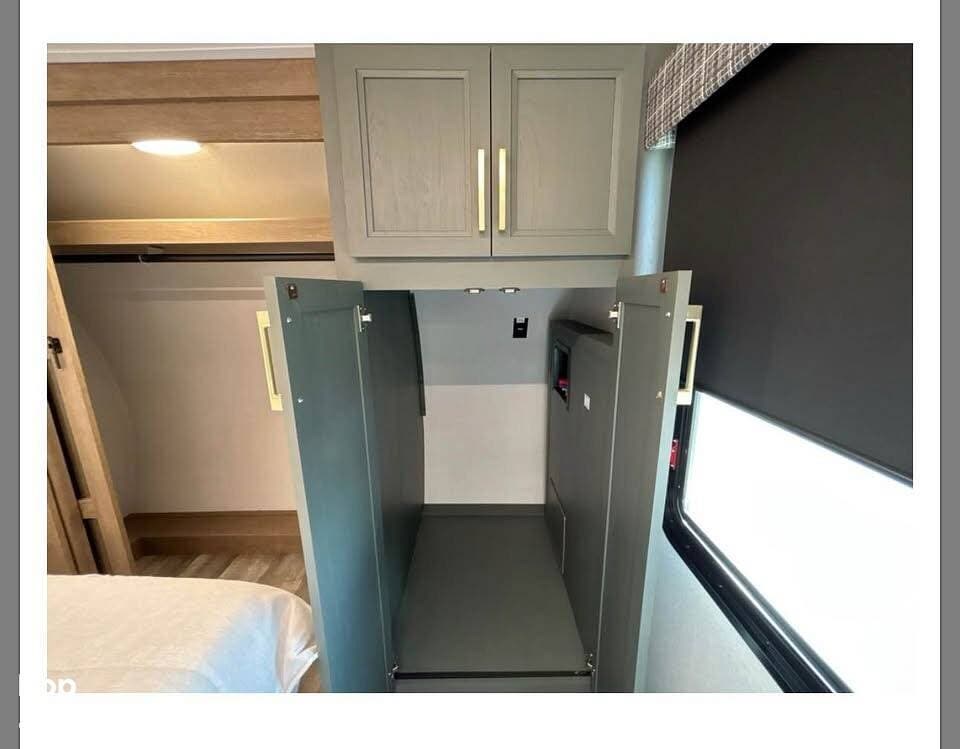 The kitchen is generous, featuring a free-standing dinette, a large farm-style sink, seamless countertops, and a pop-up power station for convenient access to outlets.