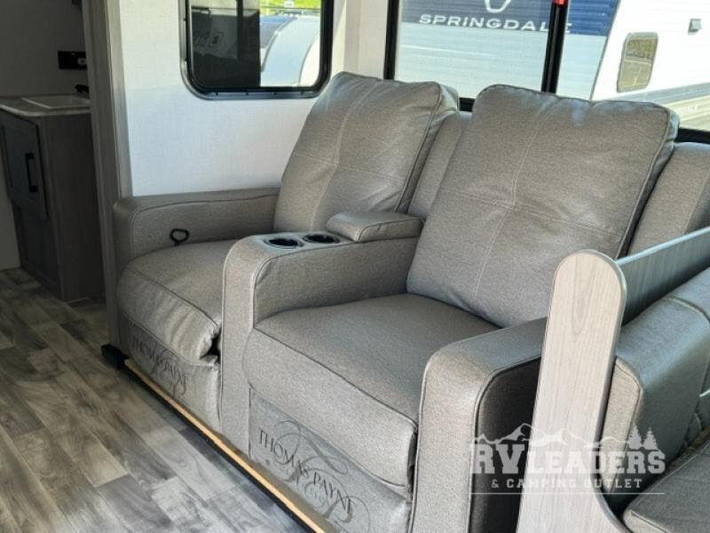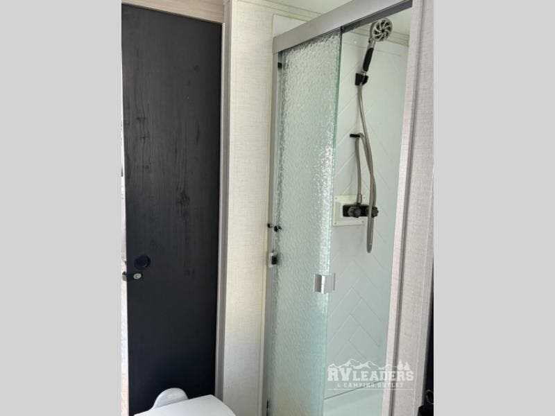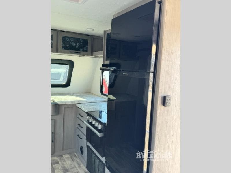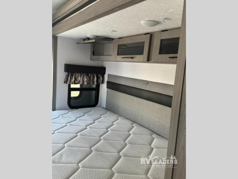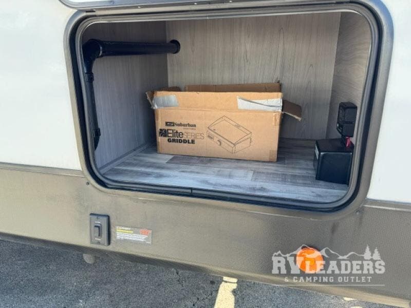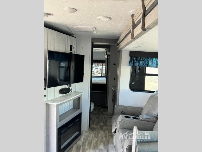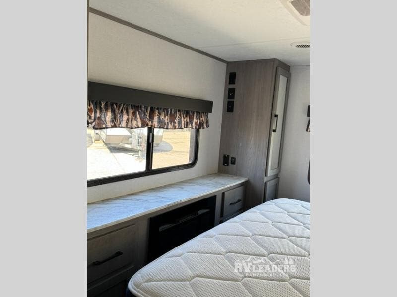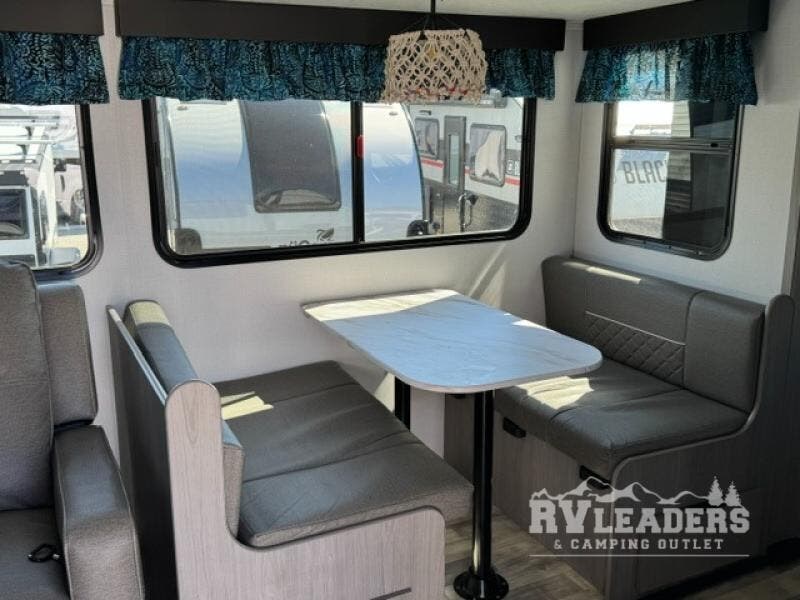 You will love every minute spent in this spacious travel trailer that includes dual slide outs! The walk through bath will create a rear master bedroom you are sure to love. You can sleep soundly on the king bed and relax in front of the bedroom fireplace. The chef of your group will have ample counter space in the kitchen to prep meals, plus there is a 10 cu. ft. refrigerator to store perishables. After dinner, get comfortable on the theater seats or play a game at the booth dinette. Or you may just want to relax outdoors under the 20' power awning with LED lights!