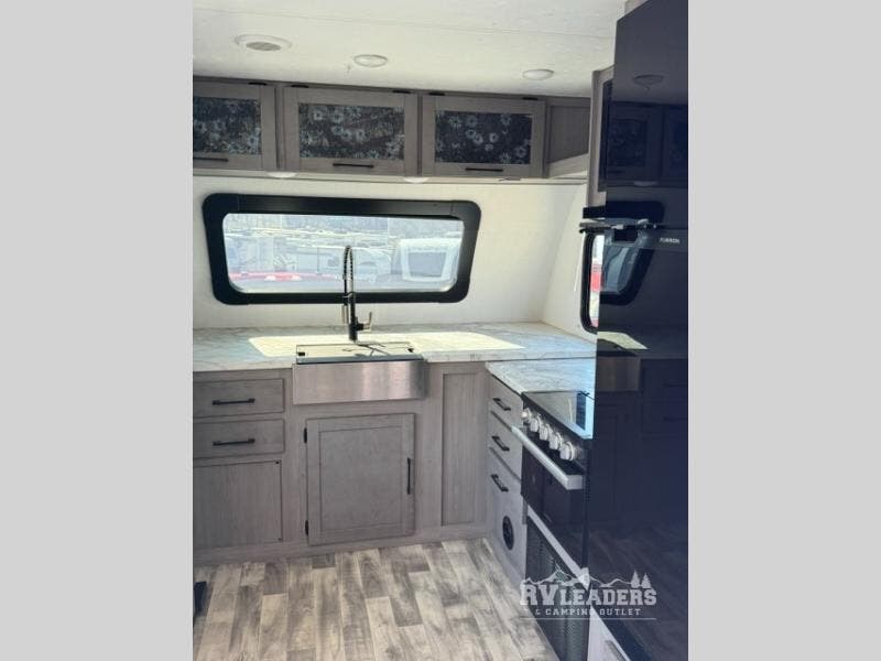 Each Kodiak Ultimate travel trailer by Dutchmen is constructed with an insulated reinforced front cap and diamond plate front rock guard to protect your RV from rock and debris on the way to the campground. The aluminum entry steps are not only dependably, but they collapse and expand quickly so you can get on the road in no-time! These models feature HyperDeck flooring that includes fiberglass reinforced thermoplastic and a fully enclosed underbelly, and the Bear Cave storage allows you to bring along all of your hiking and fishing gear. Some of the interior features you are sure to love are the modern decor choices, dual motion sensory bathroom LED lights, stainless kitchen sink with an apron front, plus a central control panel to easily keep track of your units functions. Your next adventure starts with a Kodiak Ultimate travel trailer!