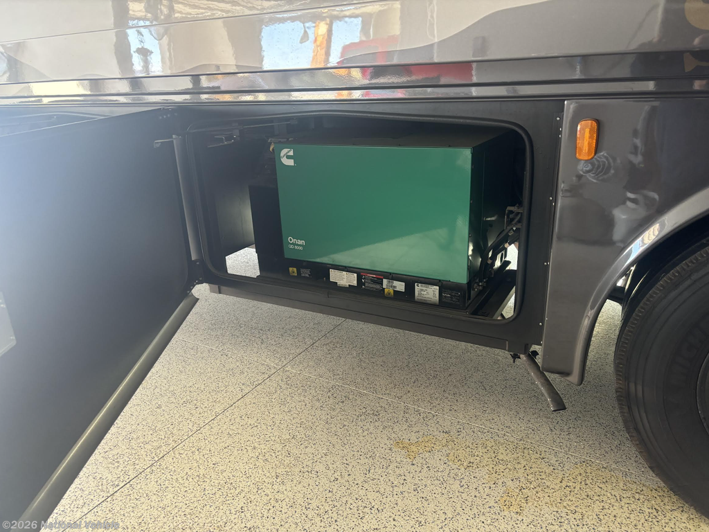 Powering the coach is a 3,000-watt hybrid pure sine inverter/charger, 1,000-watt solar system with lithium batteries, and a Cummins Onan 8kW diesel generator with auto generator start, providing serious off-grid capability.