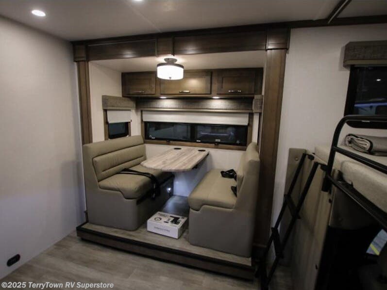 Pick a spot on the map and start traveling there in comfort with this motorhome! The rear private bedroom has a 60" x 75" gel-infused memory foam mattress for a good night's rest, LED reading lights, USB charging ports to charge your electronics while you recharge, and a 32" LED smart TV to watch movies in true comfort. The full bathroom has a designer shower with a skylight above for added head room and natural lighting and an Oxygenics body spa RV shower head for an even better showering experience on the road. The kitchen has everything you could need to prepare delicious home cooked meals including a countertop extension for more meal prepping space, and you can enjoy all of your meals at the booth dinette slide which can also transform into an extra sleeping space!
