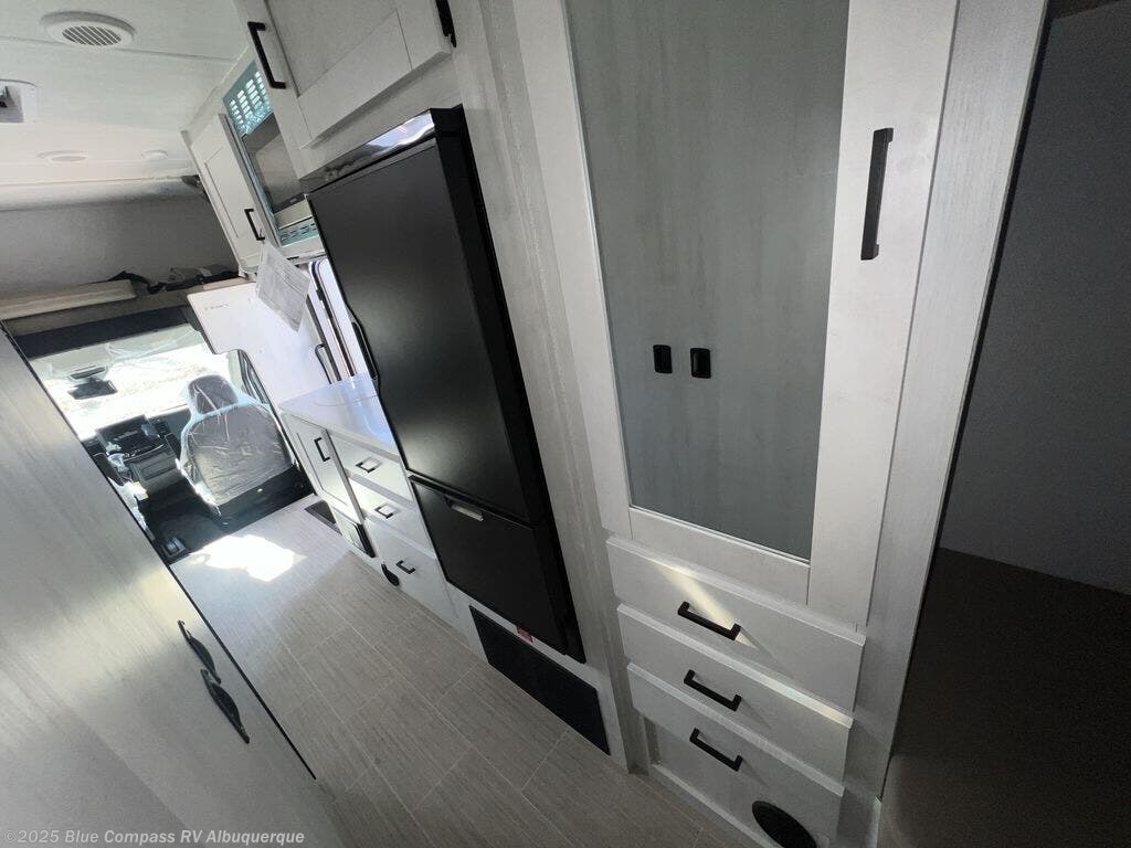 The Alita Class C gas motorhome is fueled by a 3.5L EcoBoost V6 engine which sits on the all-new Ford AWD 350 Transit chassis with 10-speed automatic Selectshift transmission. The Alita features Azdel composite sidewall and slidebox construction along with a one-piece automotive painted fiberglass front cap, Dicor Diflex II TPO roof membrane, and side port solar panel hook-up, plus more. On the inside, a cabover bunk for added sleeping or storage, a portable induction cooktop, a premium subway tile backsplash, and the Alita value package also features a luxury legless Girard awning with LED light strip, panoramic windows with integrated night shades for great views during the day and privacy when you want it at night. You will also appreciate the solar charge package option and so much more!