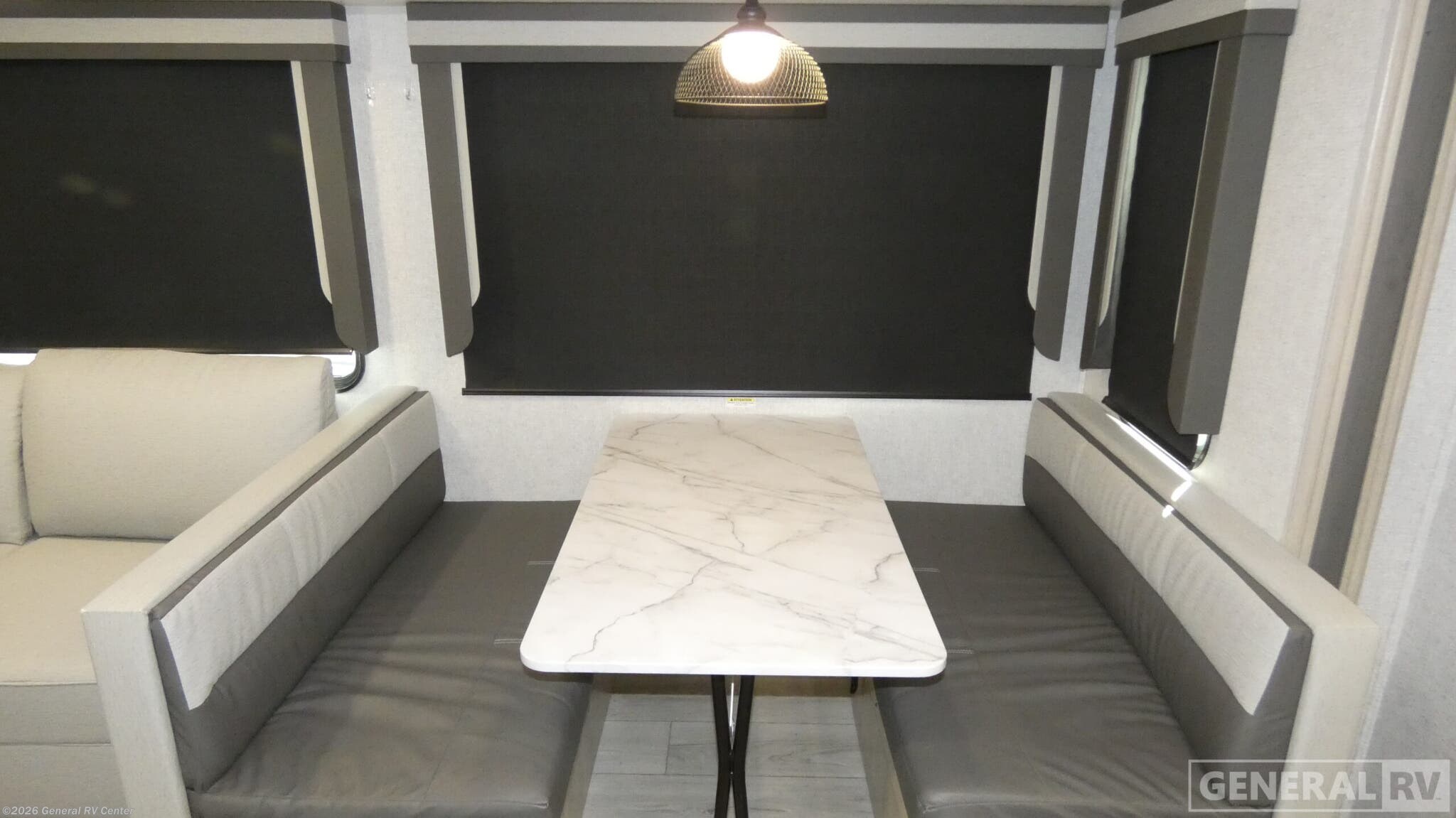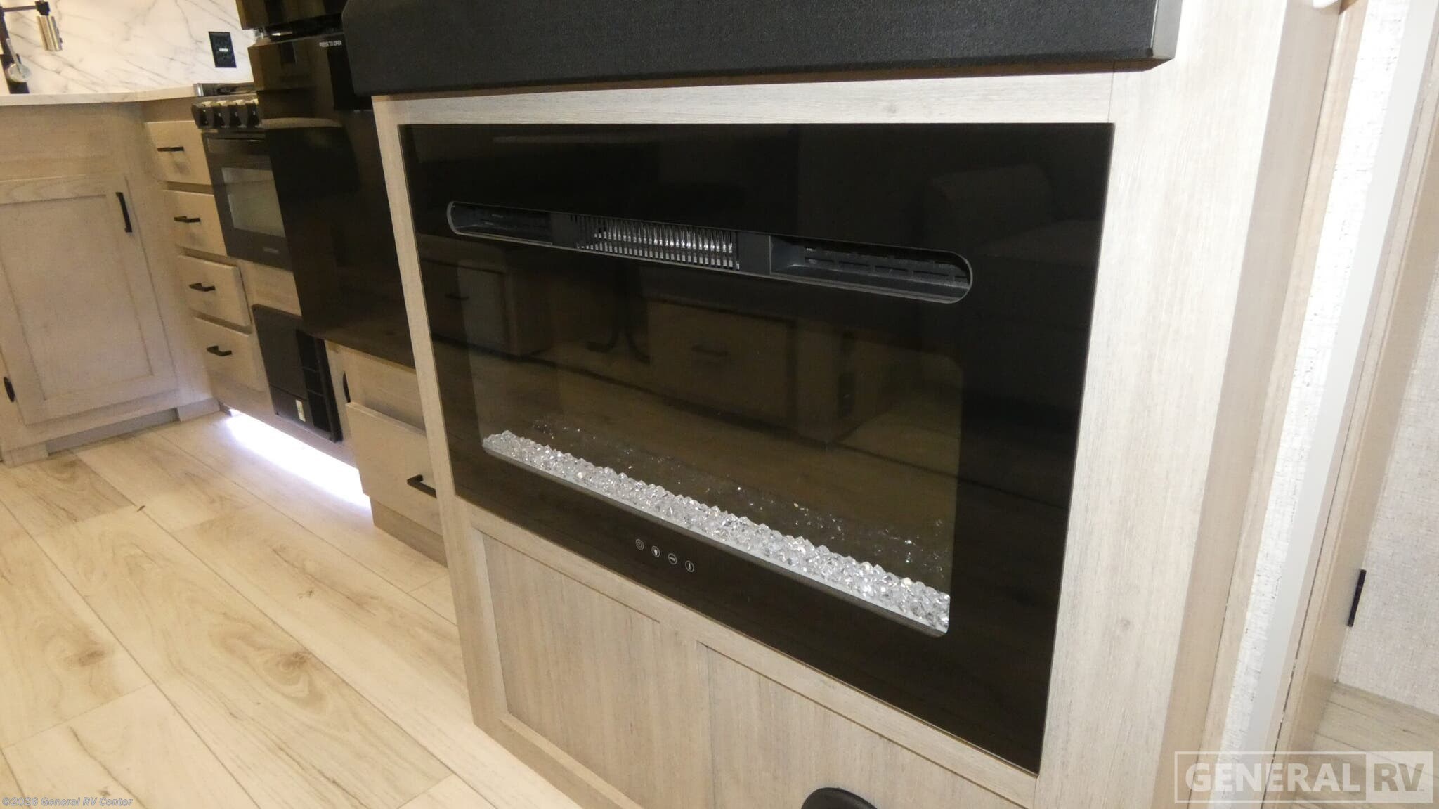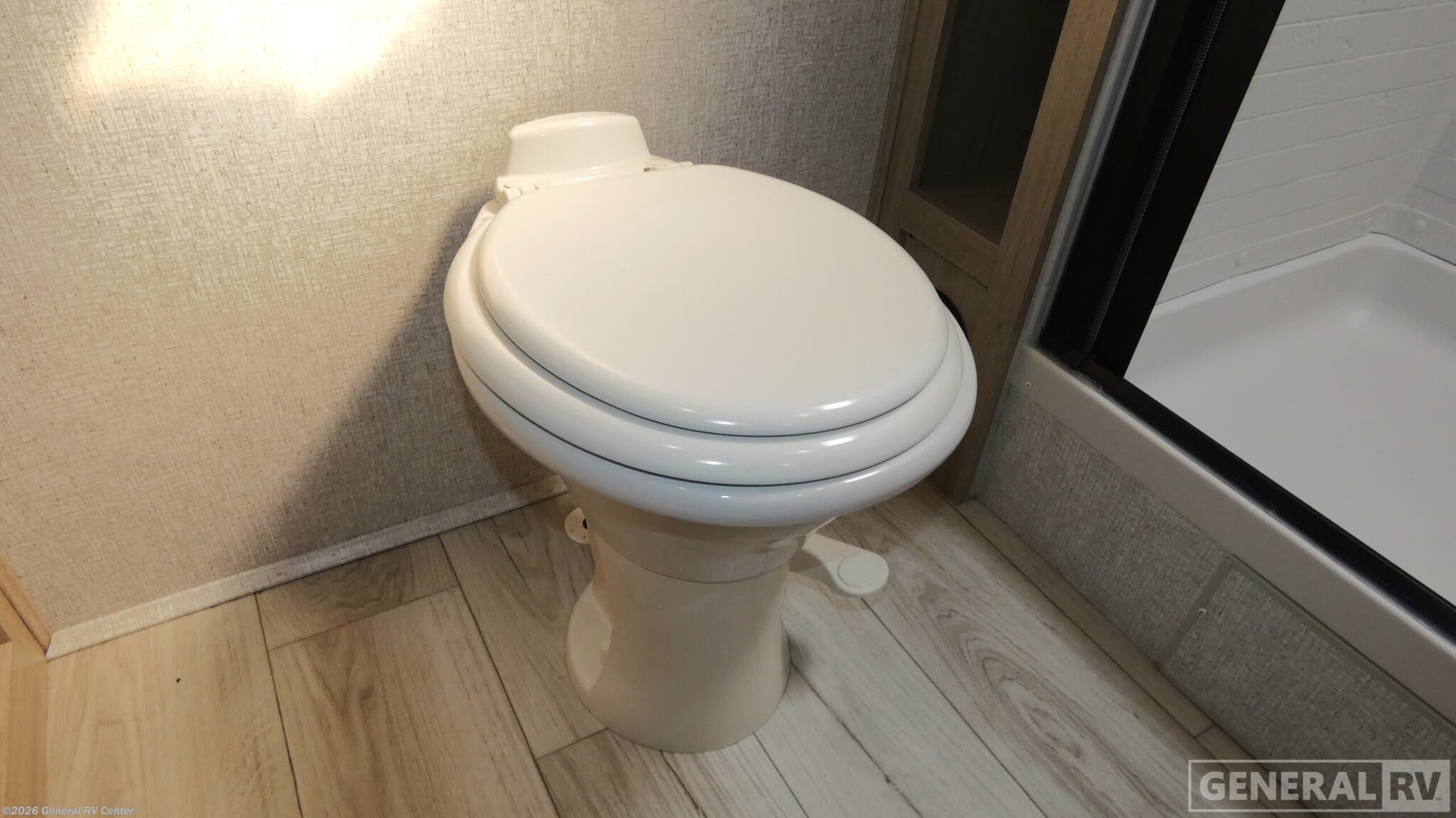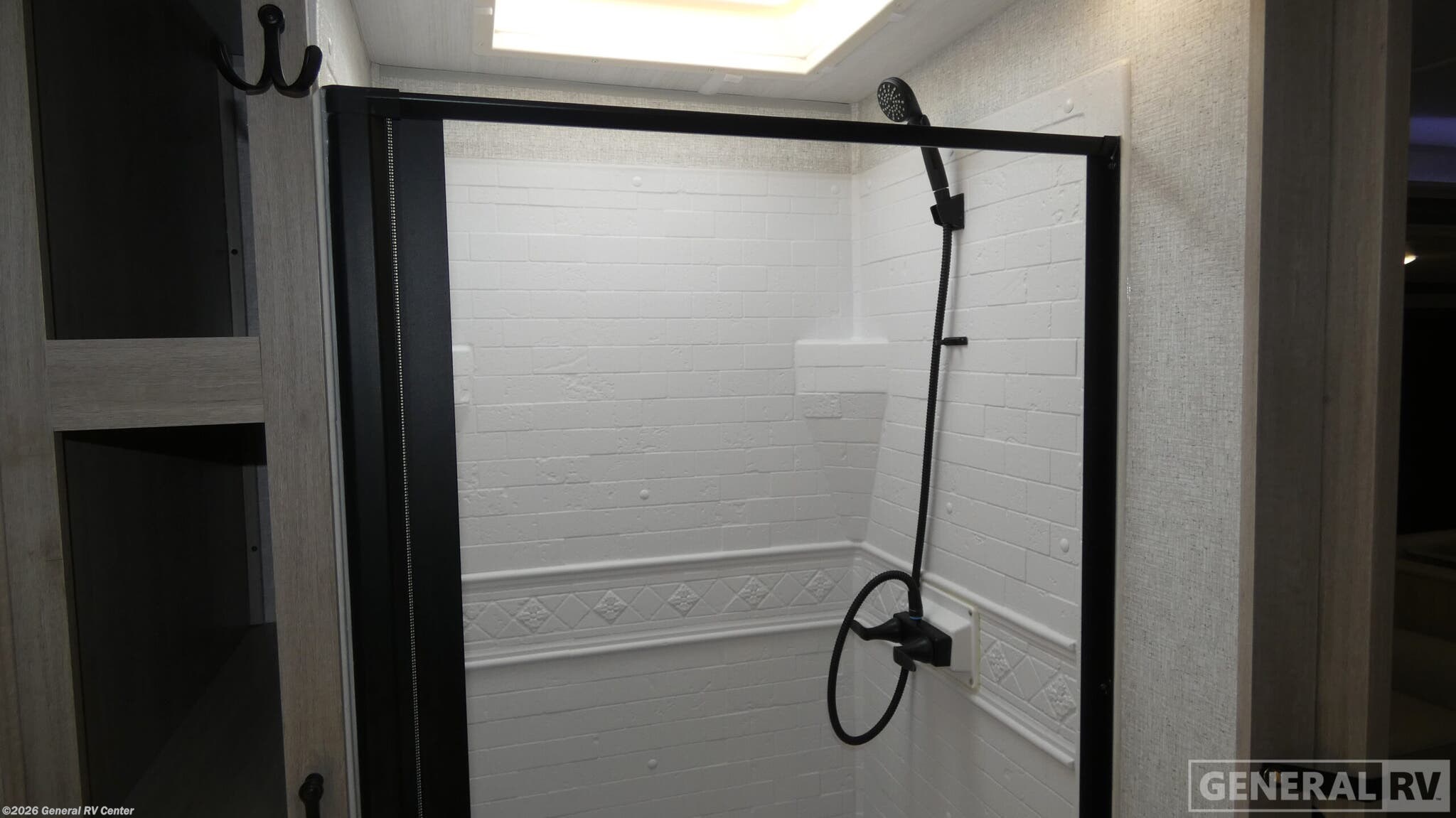 Wow! Check out the spacious full rear bath in this travel trailer for five! You'll appreciate a linen closet here and a shower skylight to let natural light in. Your crew can get comfortable on the tri-fold sofa that sits directly across from the fireplace for a more cozy feel. There is also a booth dinette here with storage space underneath for board games. Head to the kitchen to prepare dinner on the three burner cooktop, and use the countertop extension to cut fresh fruits and vegetables. A front private bedroom with a king bed and dual wardrobes will have you feeling right at home. Start camping today! Each Alta travel trailer or toy hauler by EAST TO WEST is constructed with a 5" vacuum bonded roof, an enclosed and heated underbelly, and diamond plate front rock guard for added protection. Outside, you'll find marine-grade exterior speakers, a universal docking station, and back-up camera prep that can be added to make maneuvering in and out of campgrounds easier than ever. Inside, there are 4k interior LED lights, solid pressed membrane countertops, black roller shades, and many more interior comforts you are sure to love.