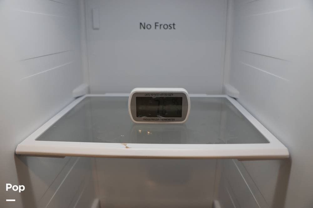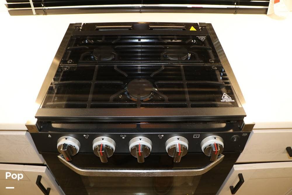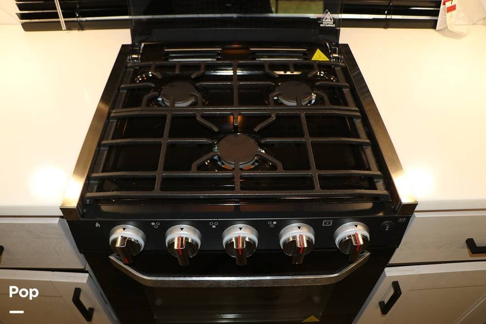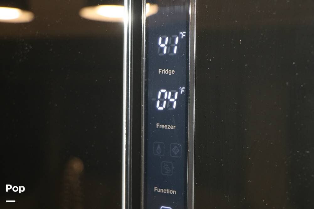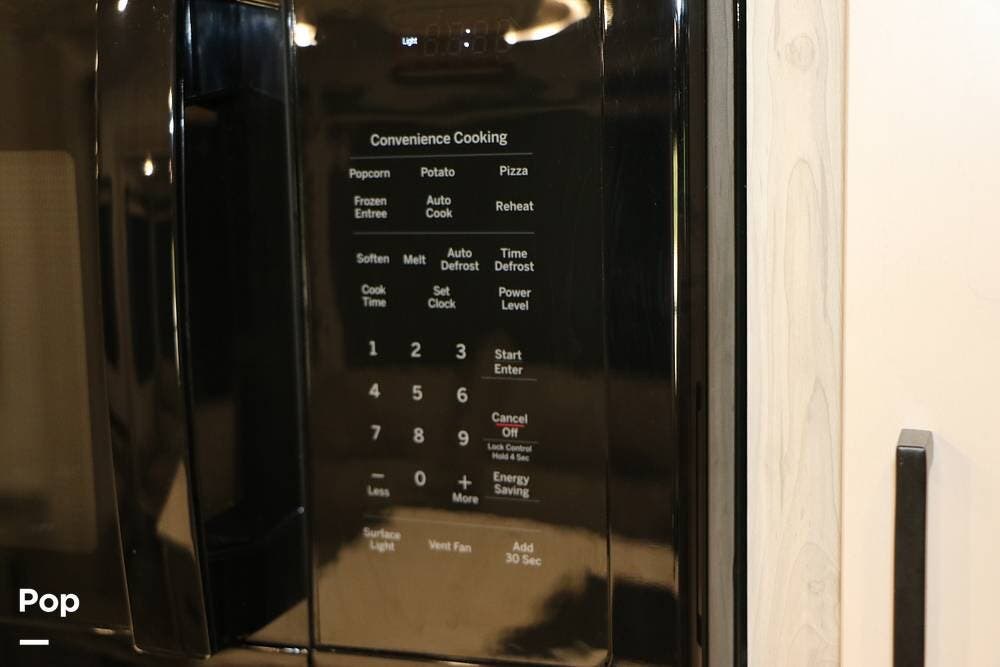 The Galley is equipped with residential-grade appliances, including a microwave over a range hood vent/fan above the 3-burner cooktop with a glass cooktop cover, and a conventional gas oven below. The kitchen Island has a large stainless steel farm-style kitchen sink with a drainboard cover and a gooseneck faucet. The refrigerator is a two-door residential side-by-side unit with a large freezer compartment. The pantry is a double-door, lighted storage area that allows you to easily entertain while keeping all your food items stored and out of the way.