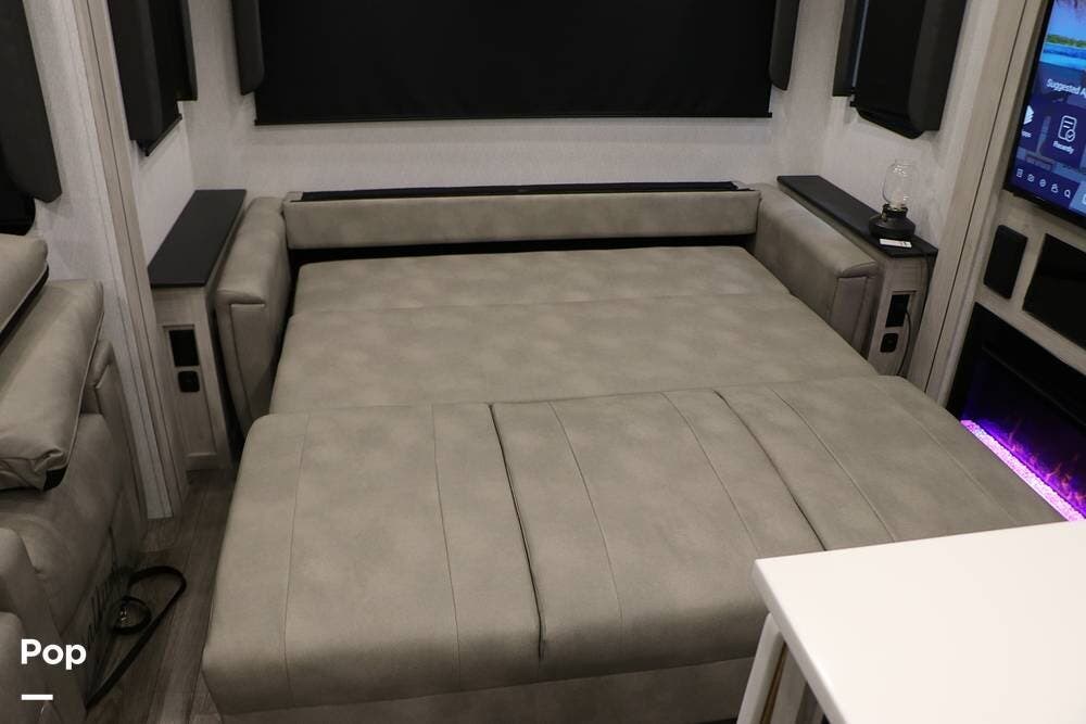 The double recliners are directly opposite the Entertainment Center and the large tri-fold sleeper sofa, which quickly converts into a second sleeping area at night.