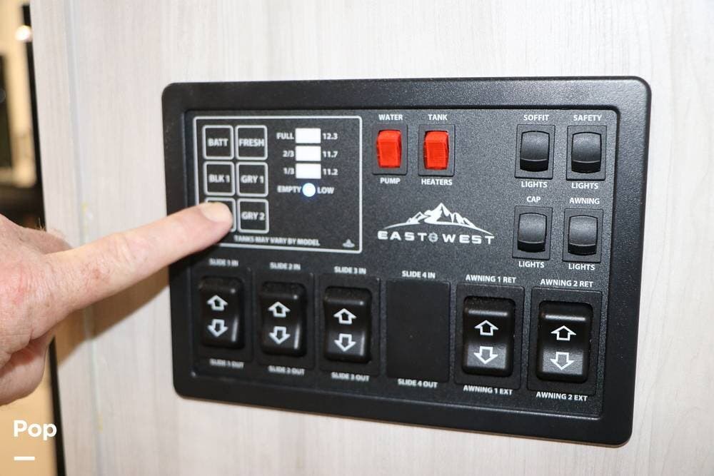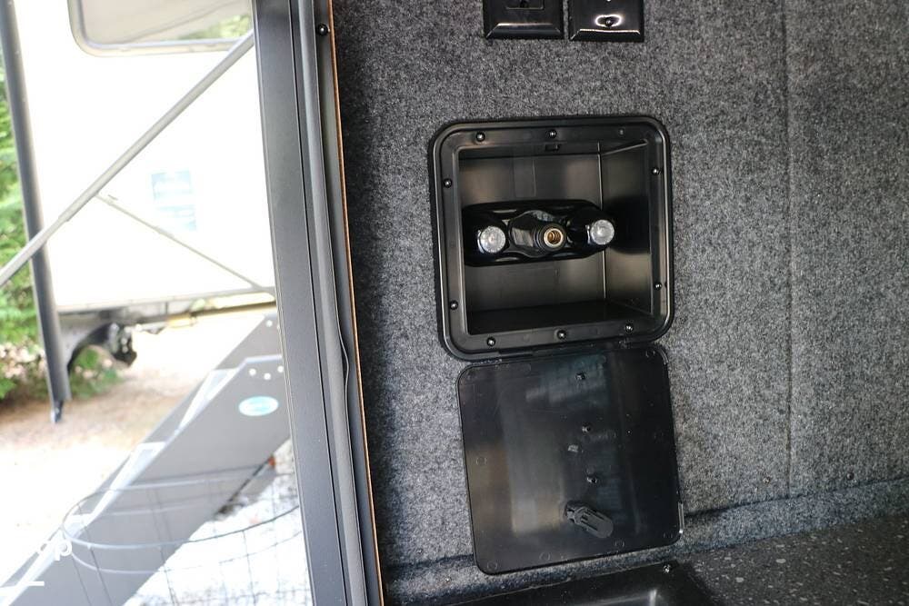There is a separate touchscreen control panel in the same compartment, and the leveling system control panel is located on the driver's side of the RV as well. All of the RV systems are clearly marked and easily accessible around the exterior of the RV.