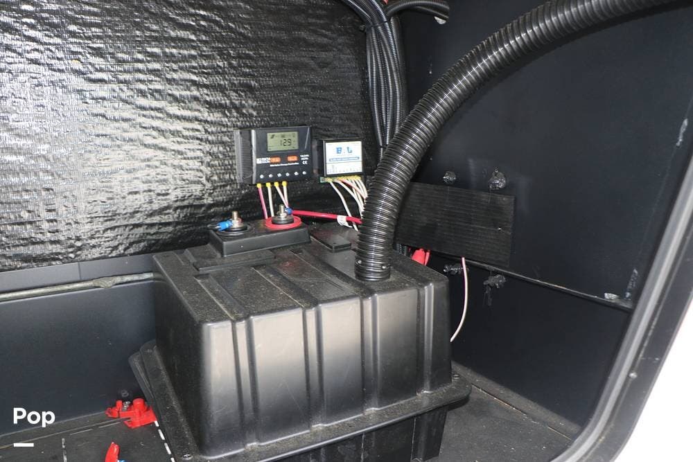 The control panels are on the wall opposite the entry doorway - for easy access. The unit is equipped with heated tanks and is rated for all four seasons of camping, featuring additional insulation.