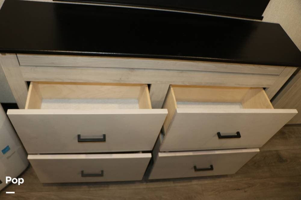 There is a dress with a hidden jewelry compartment in the dresser at the foot of the bed. The bedroom is prepped for a second TV, should you desire one - it could be easily added. The bedroom also has its own AC unit and thermostat, separate from the living and dining area's AC, which controls the rest of the RV's cooling.