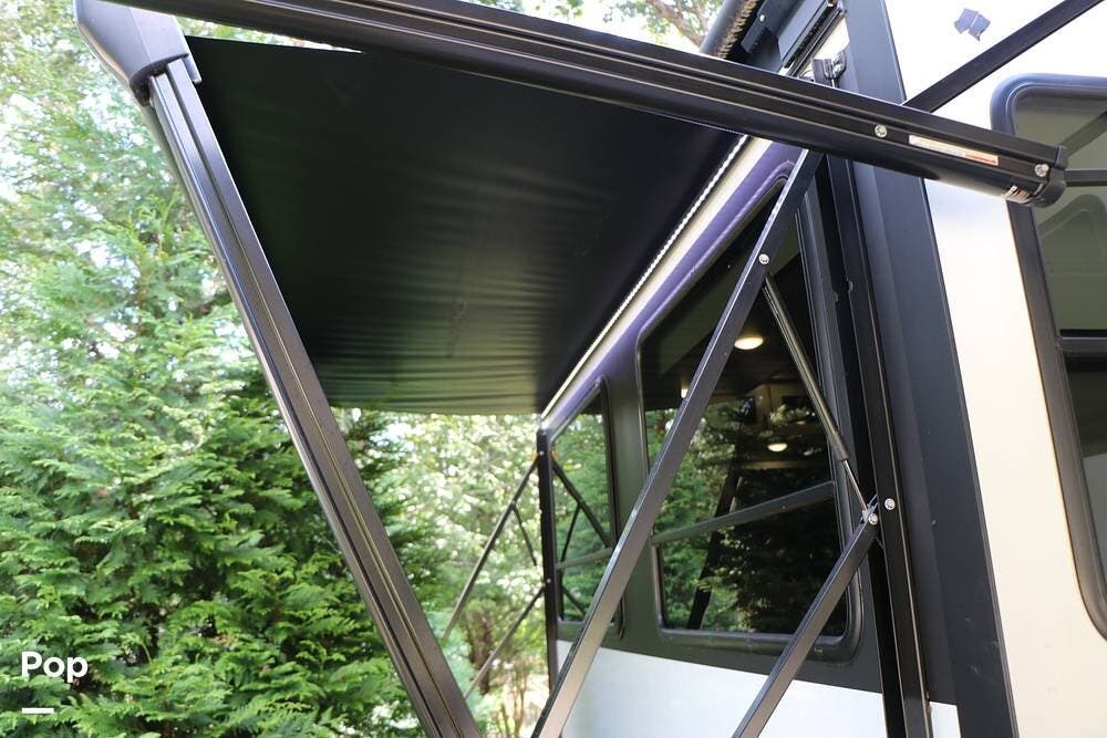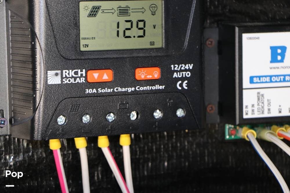 The RV has numerous upgrades, including a Solar Panel and Converter for keeping the Battery charged and ready for your next trip, two Power Patio Awnings, Slide-out awning toppers, Solid Entry Steps, separate clothes washer and dryer units, and more!