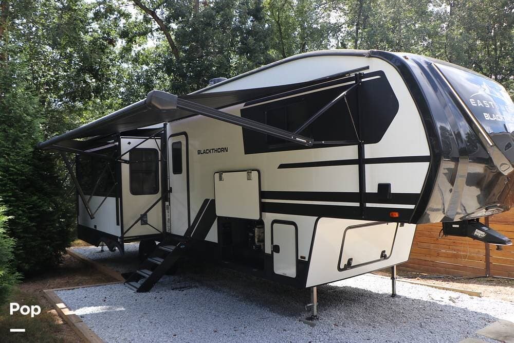 Looking for a nearly new Fifth Wheel to travel in style? Look no further - this 2024 Blackthorn 3100RL by East to West offers luxurious living on the road for you and your family.