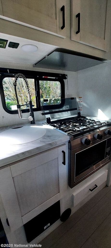 Inside, the 2200S features a thoughtful layout built to accommodate up to six people comfortably. You?ll find a cab-over bunk, a queen bed slide, and a well-equipped kitchen that includes a 10.7 cu ft 12-volt refrigerator, convection microwave and generous storage. An open living area, creating a cozy and inviting space to relax, dine and unwind after a day of adventure.