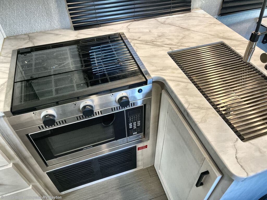 When traveling you want comfort no matter if you are driving, riding, or relaxing once at your campsite. Well, you will have it in this coach! There is a 62" sofa and 42" x 68" booth dinette that can be used for lounging together after an afternoon of walking around the campground, plus the bunk over the cab and the queen-size bed can be utilized if you are too tired to stay up for another minute. Once you are fully rested, head to the kitchen to prepare a delicious breakfast feast with the convection microwave and cooktop. Use the double sink to clean up, and the 10.7-cubic foot refrigerator to keep your perishables fresh. You can even add some extra prep space to this area by pulling out the flip-up countertop. There is also storage all throughout this motorhome with bedside closets, the bathroom shelves, a kitchen pantry, cab storage, and within overhead cabinets.