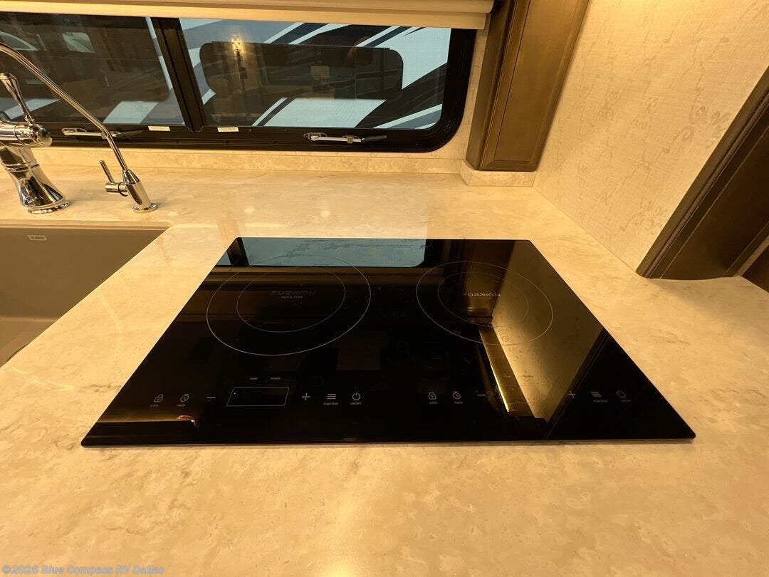 With any Anthem Class A diesel motorhome by Entegra Coach, setting up camp has never been easier with the 15-inch digital dash displaying an integrated 360-degree surround view system with fourteen smart radar sensors and six HD cameras plus the Valid air leveling system. Each roof is constructed with arched aluminum trusses filled with batt insulation and reflective Flexfoil topped with plywood decking then one-piece fiberglass, exterior walls with Aluma-Tru welded tubular aluminum studs, insulated front and rear caps, and X-Bridge bracing welded into the chassis frame. The interior provides the Firefly multiplex system with 10-inch VegaTouch touchscreen for complete integration of the coach controls with remote monitoring and control from the available mobile app, a decorative ceiling feature with integrated accent lighting, powered solar day and blackout night shades, a central vacuum system, and Aire-Secure travel locks for all pocket doors to mention a few luxury, stylish and convenient features. So why not experience the best trip each and every time, choose an Anthem today!