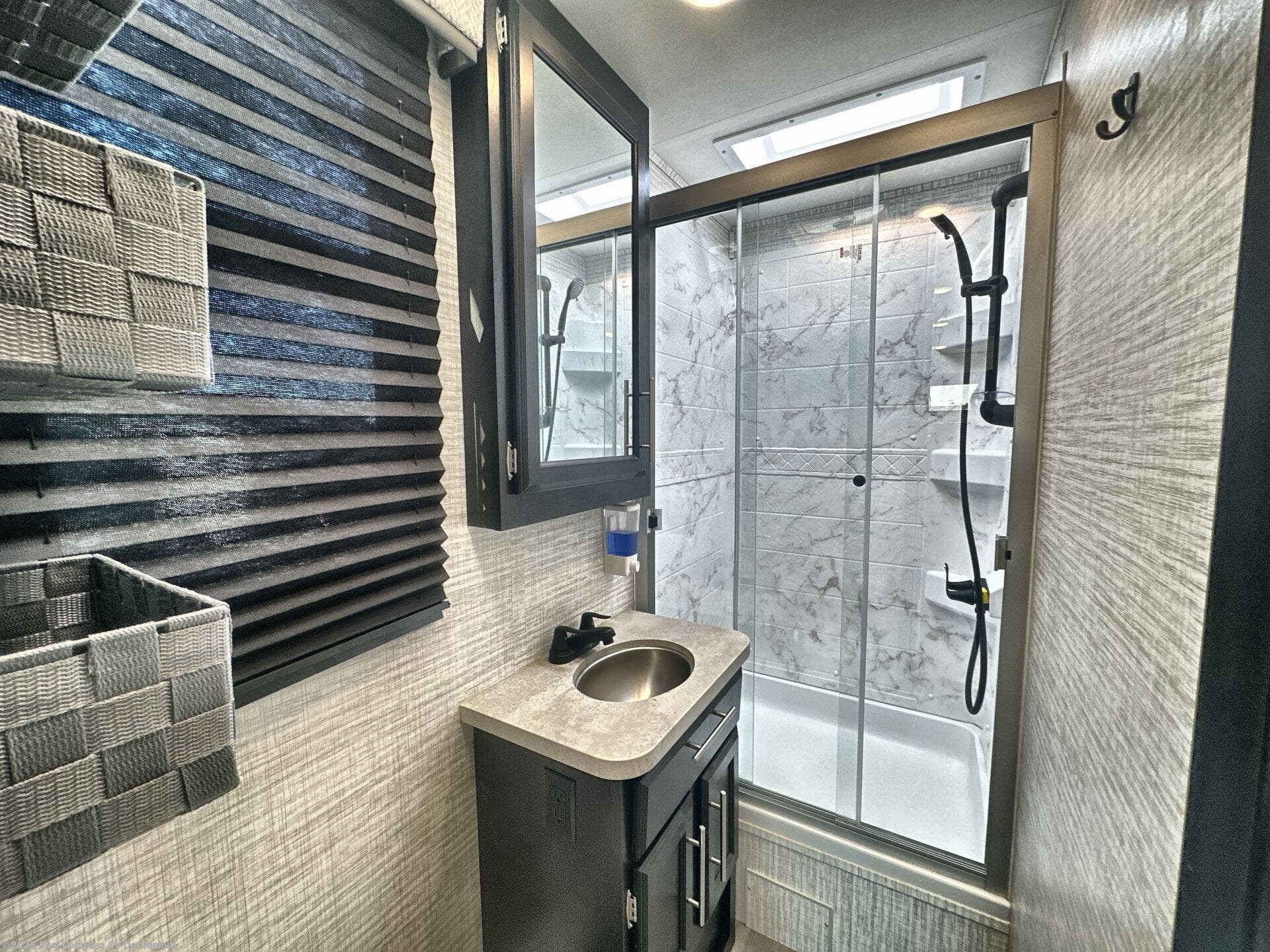 Looking to travel to see family and friends while stopping along the way to take in the scenery? Need comfortable accommodations for you and another plus extra sleeping space when you have overnight guests? This coach provides a full-wall slide for more interior floor space and includes a queen bed for a good night's sleep, a wardrobe for clothing, plus a U-shaped dinette and pantry. The dinette doubles as sleeping space, plus you have a cab-over bunk. The cook will have everything nearby to whip up meals including a residential-size microwave, and the full bathroom allows everyone to skip the public facilities along the way.