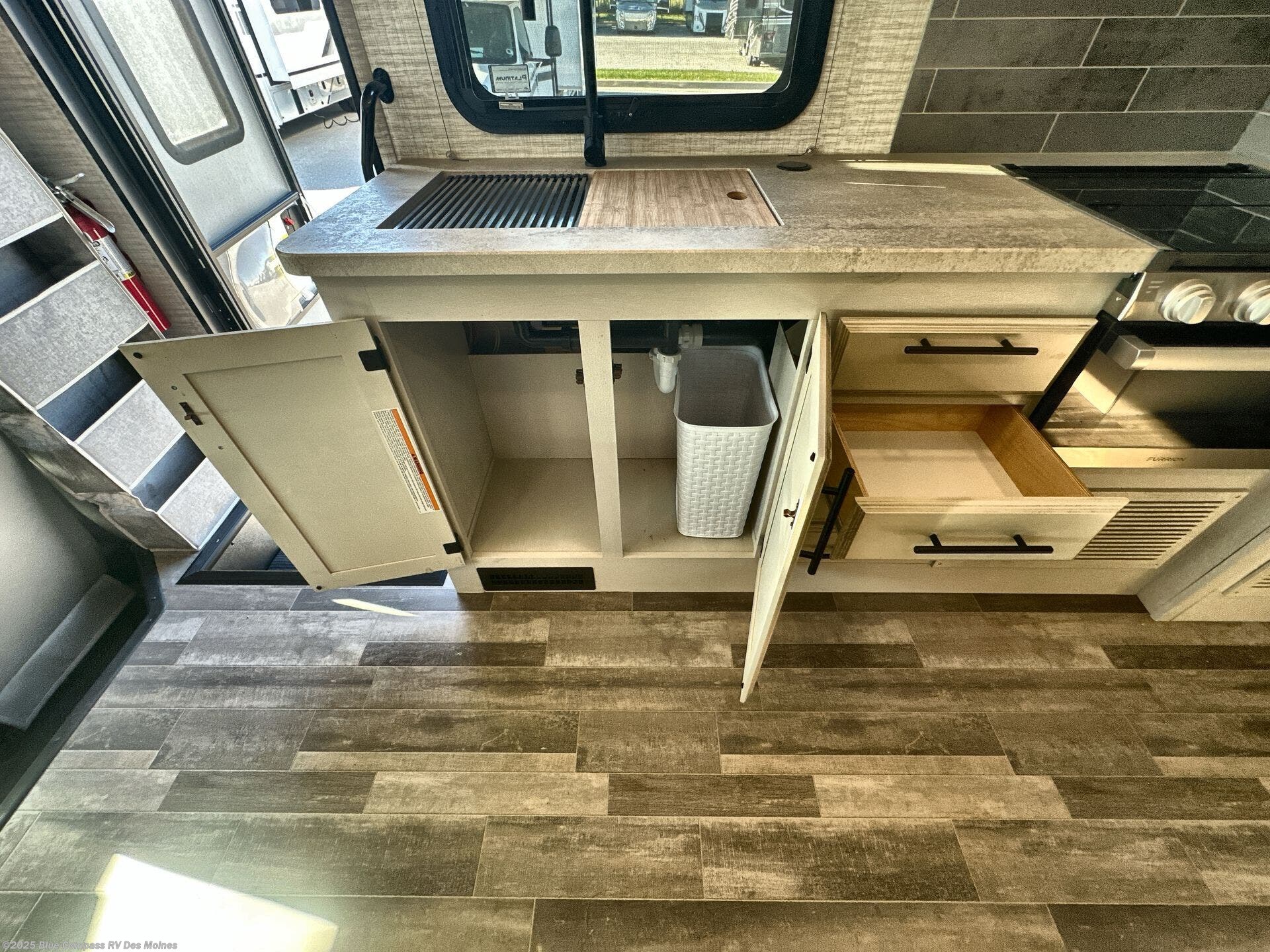 With any Odyssey Class C gas motorhome by Entegra Coach, the driver will appreciate the power from the 325 HP engine, the towing capacity from the 7,500 lb. hitch, the tire pressure monitoring system, the navigation from the Sony infotainment center with Apple CarPlay and Android Auto, plus the backup and side-view cameras when parking and driving down the highway. The kitchen offers full amenities including a recessed stainless steel sink with a cutting board sink cover, LED-lit countertops, a decorative backsplash, and a pop-up charging station with 110 outlet and USB plugs to keep your smart phones charged. Get ready for luxury in a Class C, choose your favorite today!