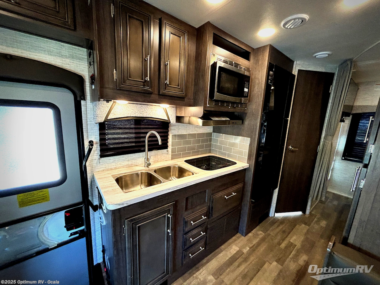 Make your trips complete in this coach that can sleep four to five each night. There is a cab-over bunk with a 750 lb. capacity for guests and an RV queen bed slide out in the rear corner bedroom. The booth dinette can be used to dine at, play games, and even sleep an additional guest or two little ones. A two burner cooktop comes standard in the kitchen, along with a convection microwave, a stainless steel sink, and a 10 cu. ft. refrigerator. You will also appreciate having a full bath on board, and the 13' electric awning outside will provide a place to relax with a cold drink!