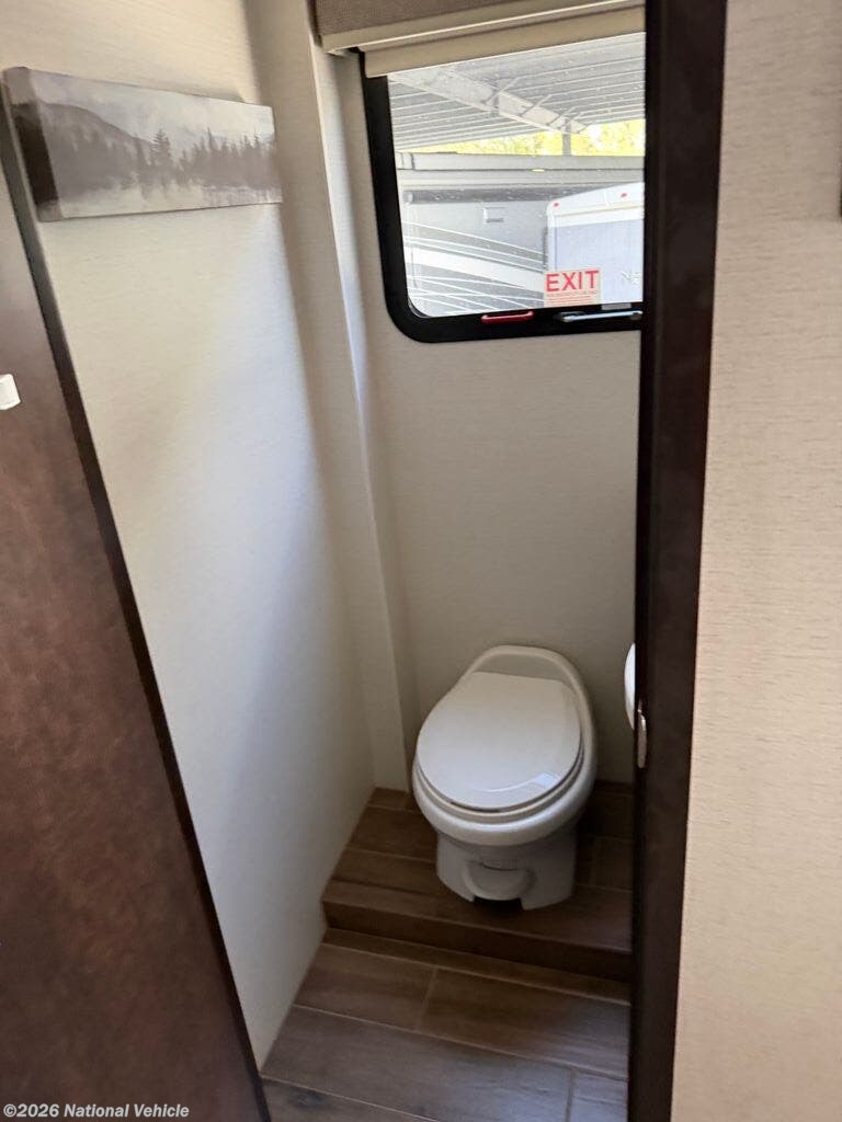 Toward the rear, the private master suite offers a relaxing retreat with a comfortable king bed, generous wardrobe storage, and a washer/dryer. The well-appointed bathroom includes a large shower, vanity, and modern fixtures, delivering the comfort and convenience of home wherever your travels take you.