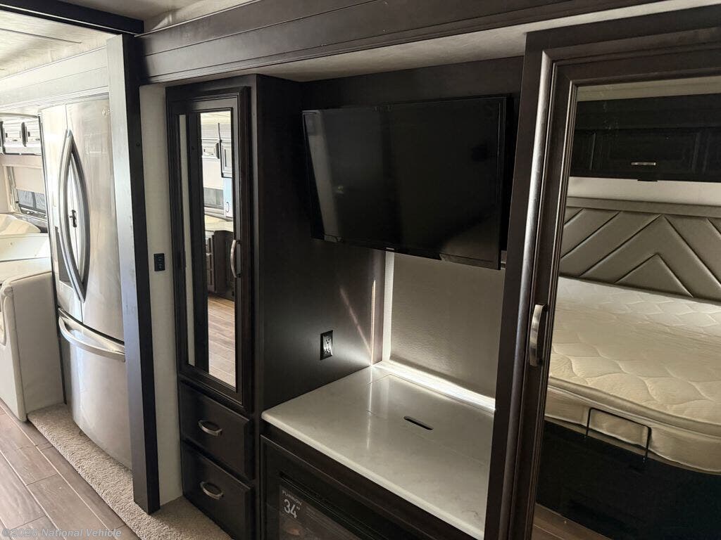 This all-electric coach also features high-end technology and comfort systems, including Aqua-Hot hydronic heating, heated floors, a Firefly multiplex control system with touchscreen controls, solar panels, and a 10KW Onan generator.