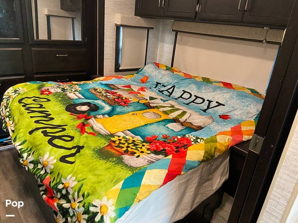 Sleeps up to six comfortably: the king bed in the back bedroom, a convertible dinette, and the power drop-down overhead bunk.