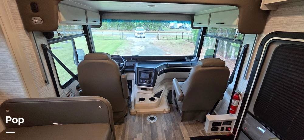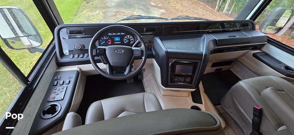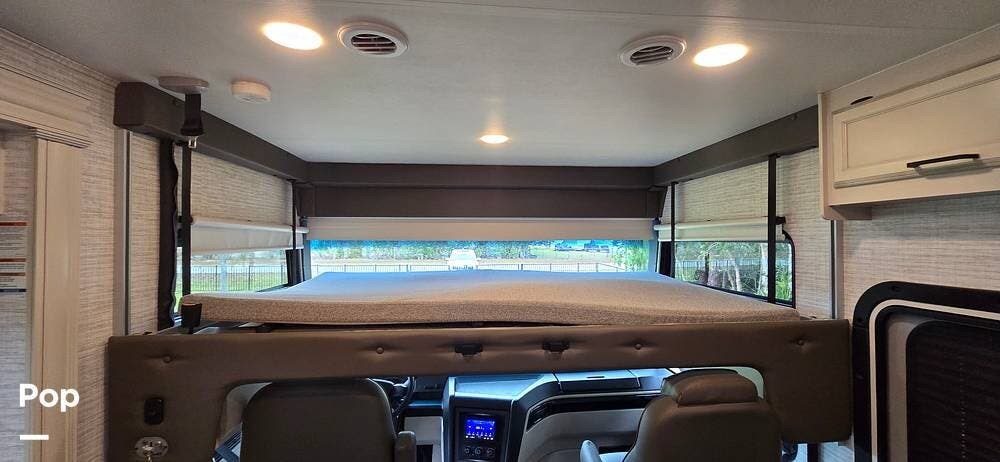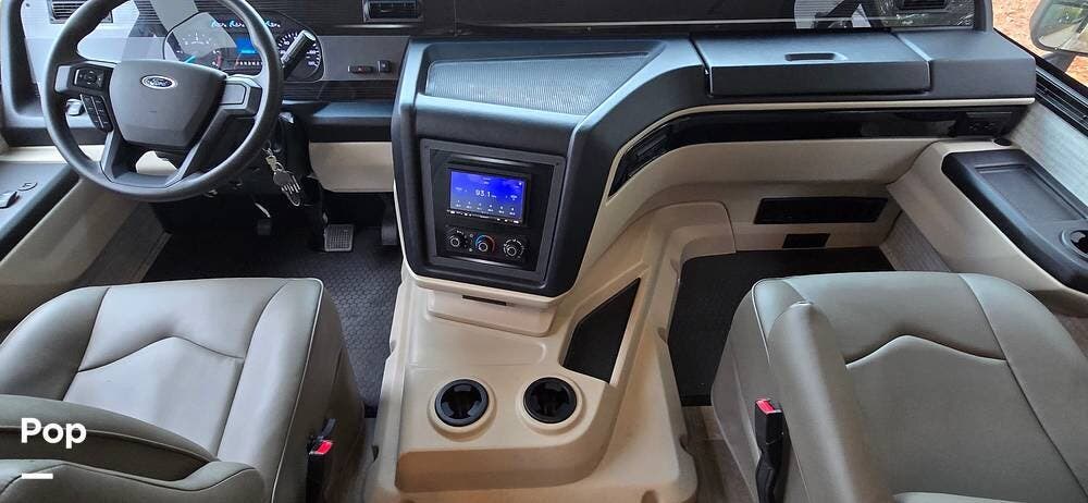 A large panoramic windshield provides excellent visibility, while the automotive-styled dash creates a refined, modern feel. The driver and passenger captain's chairs offer excellent support for long drives and swivel to become part of the living space when parked. Integrated dash controls, backup and side-view camera systems, and an advanced infotainment system with smartphone connectivity make navigation, entertainment, and vehicle monitoring intuitive and stress-free.