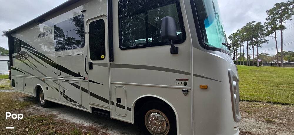 This Vision 29F sits on the dependable Ford F53 chassis, powered by a robust 7.3L Ford V8 engine producing 335 HP and 468 ft-lb of torque, paired with a smooth 6-speed automatic TorqShift transmission for confident highway cruising and effortless maneuvering.