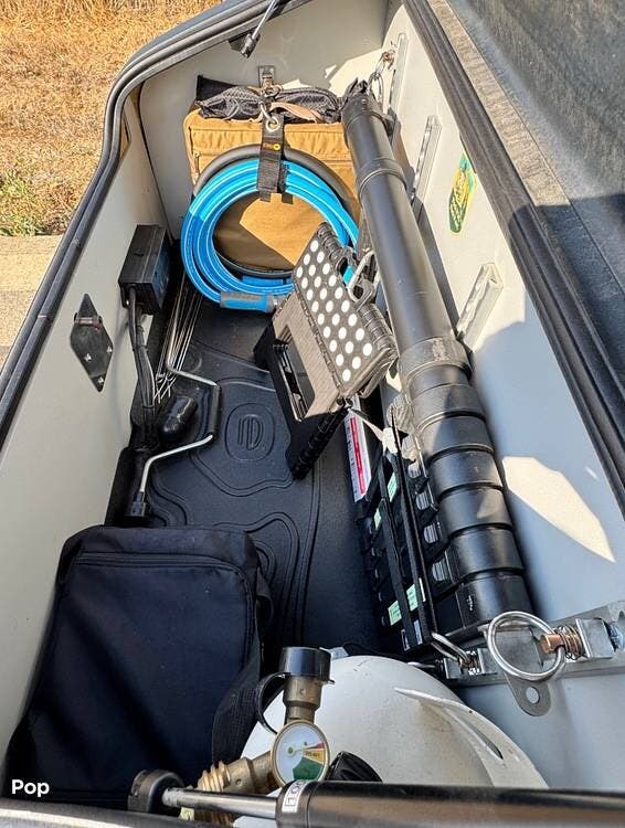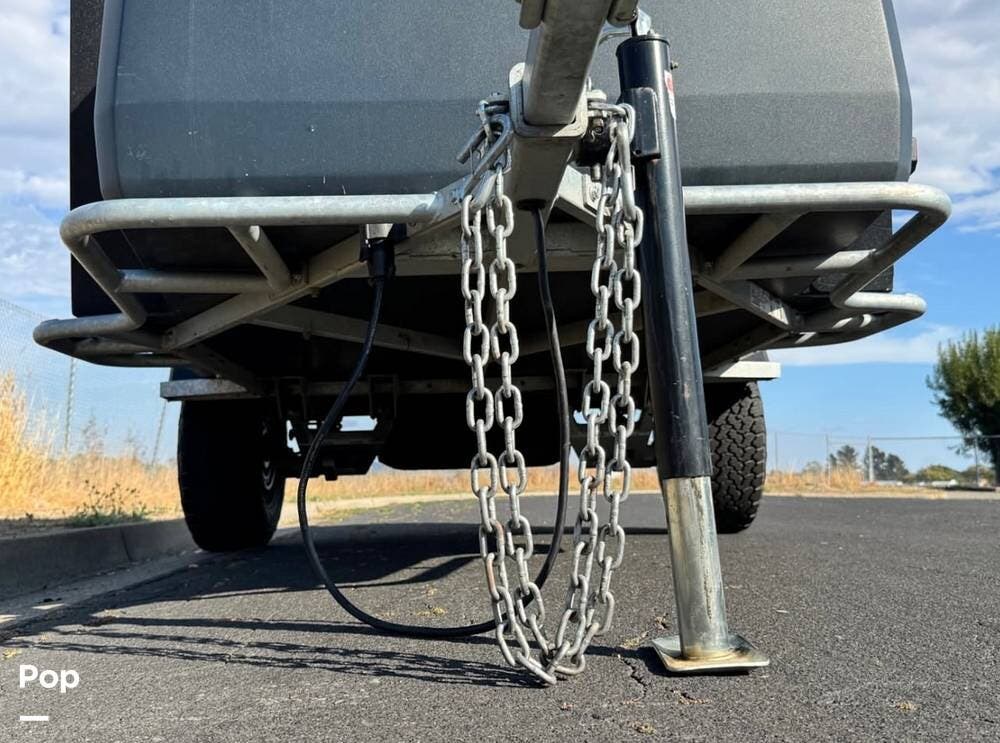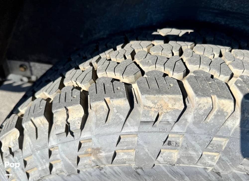 Beyond factory specifications, this Topo2 Voyager includes a range of aftermarket upgrades such as stainless steel exterior hardware, reinforced tongue box struts, Dexter electric brakes and drums, waterproofed roof rack tracks, thread-locked metal hardware, and a RAM tongue jack.