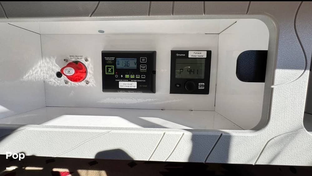 Power and systems come from dual e360 200Ah lithium-ion batteries, a 2,000W inverter, 140W solar panel, and shore power with an integrated charger. A Simarine monitoring system provides full visibility of your power and water usage, while the Truma water and cabin heater offers year-round comfort with an integrated shower system and a 21-gallon water tank.