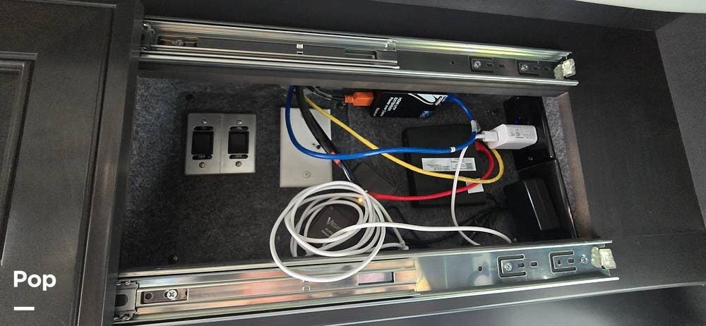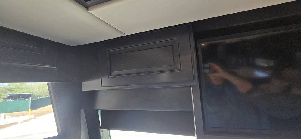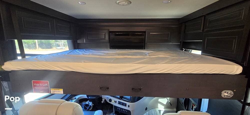The added optional Hide-A-Loft electric drop-down bed, conveniently positioned above the cockpit area. With the push of a button, this additional sleeping space lowers smoothly and stores neatly overhead when not in use, making it ideal for guests or family members without sacrificing daytime living space.