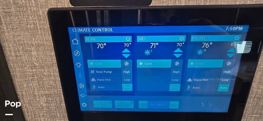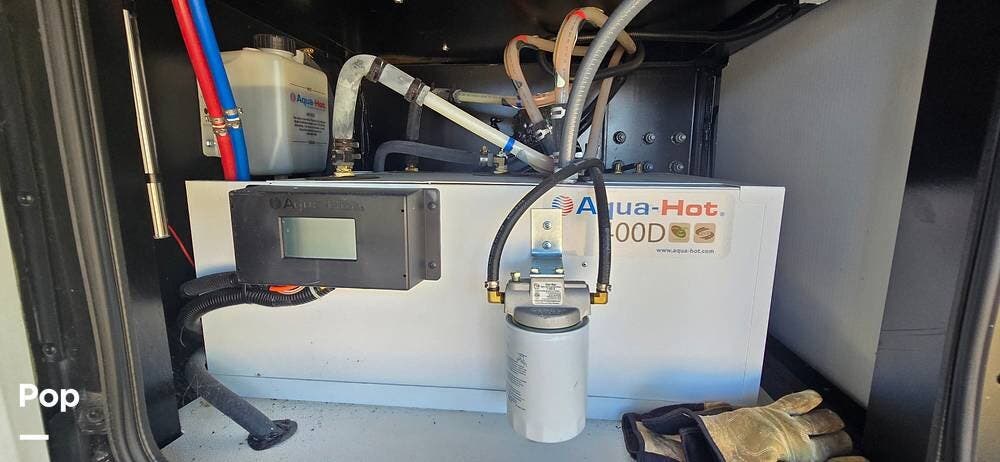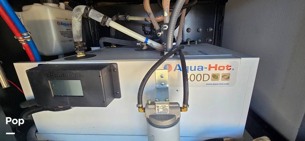 Hydronic comfort is delivered through the Aqua-Hot 400D system, providing continuous on-demand hot water along with quiet, even interior heating. This premium system ensures long, residential-style showers and consistent climate comfort year-round.
