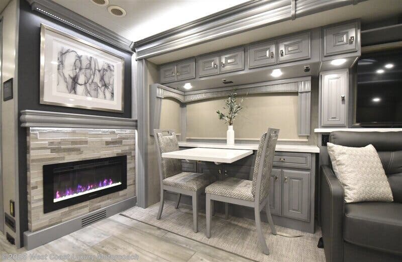 2024 Fleetwood Discovery LXE 40M, Freightliner XCM chassis with a 380-hp Cummins L9 engine and an Allison transmission. 3 Slide, Bath-and-a-half floor plan features a spacious living area and a large rear master bathroom. A hide-a-bed sofa and a free-standing dinette with a credenza can accommodate guests. An optional Hide-a-Loft drop-down bunk provides an extra sleeping area. Kitchen is equipped with high-end, residential-style appliances, including a residential stainless-steel refrigerator, two-burner induction cooktop, and an over-the-range convection microwave as well as a dishwasher. Master bath has two residential sinks, solid-surface countertops, and a spacious tile shower with a seat. Memory foam king bed is featured in the bedroom, which includes dual wardrobes for ample storage. Heated porcelain tile flooring, hardwood cabinetry, an electric fireplace, a central vacuum system, and a stackable washer and dryer. Three 15,000 BTU roof-mounted AC units keep the interior comfortable, 8,000-watt Onan Quiet Diesel generator with solar, 2000W pure sine inverter, six 6V deep-cycle house batteries, Aqua-Hot 400D, Outside fridge/freezer. Holds 105 gallons of fresh water, 75 gallons of grey water, and 50 gallons of black water. 1 owner, loaded with options Like new !!!! Trade ins welcome, warranty available Craig 714-814-4165