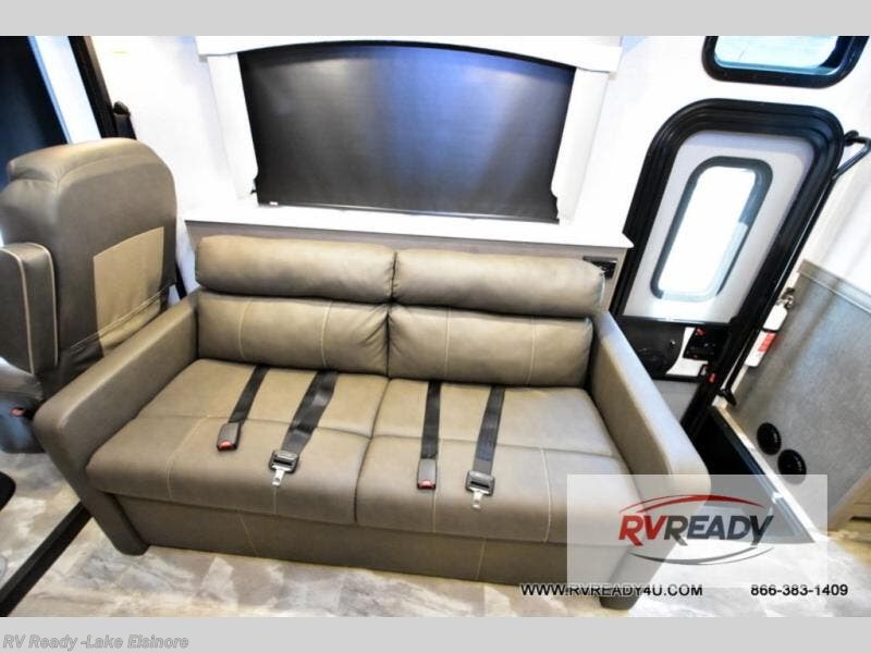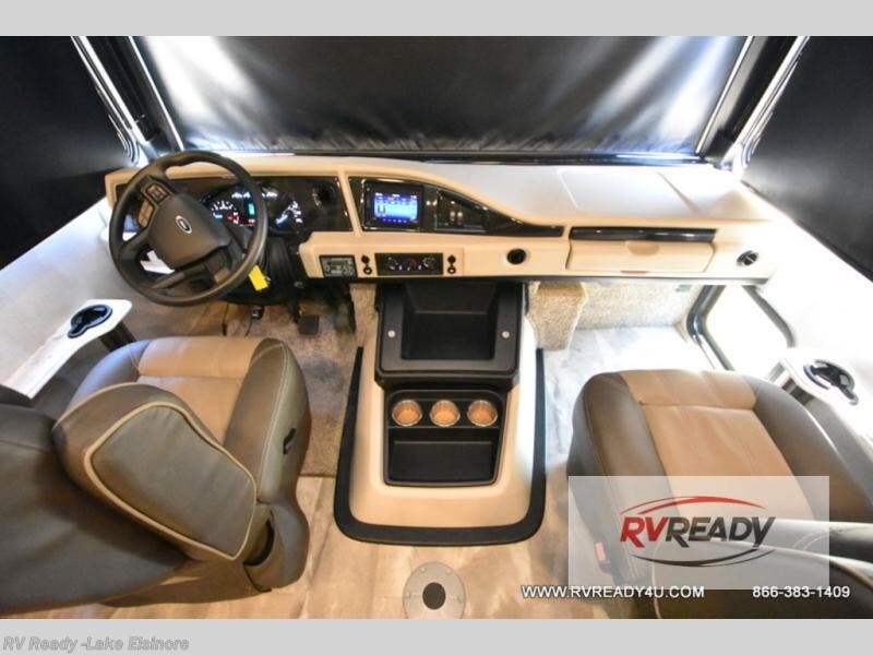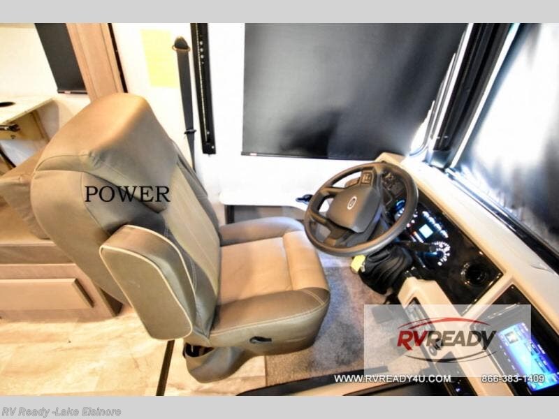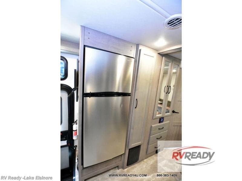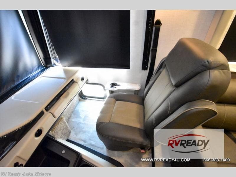 If you're hoping for a luxurious getaway, look no further than this Flair Class A gas motorhome! You can sleep in peace in your own private bedroom, and the full bathroom with shower skylight is directly connected to the bedroom for easy morning routines. Next to the residential refrigerator is a pantry, so you have great kitchen storage, and you also have a three-burner range to cook those foods on. A jackknife sofa gives you lounging and sleeping space, and you have a Wi-Fi Ranger Sky4 to keep connected to the modern world.