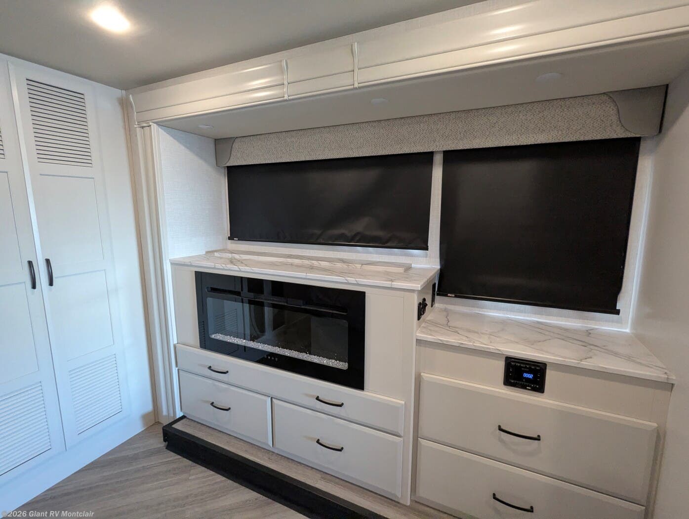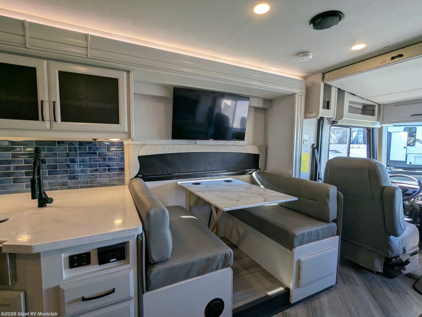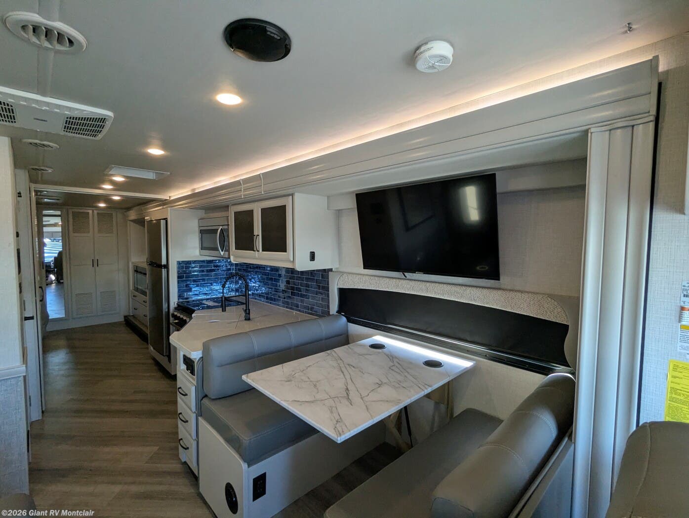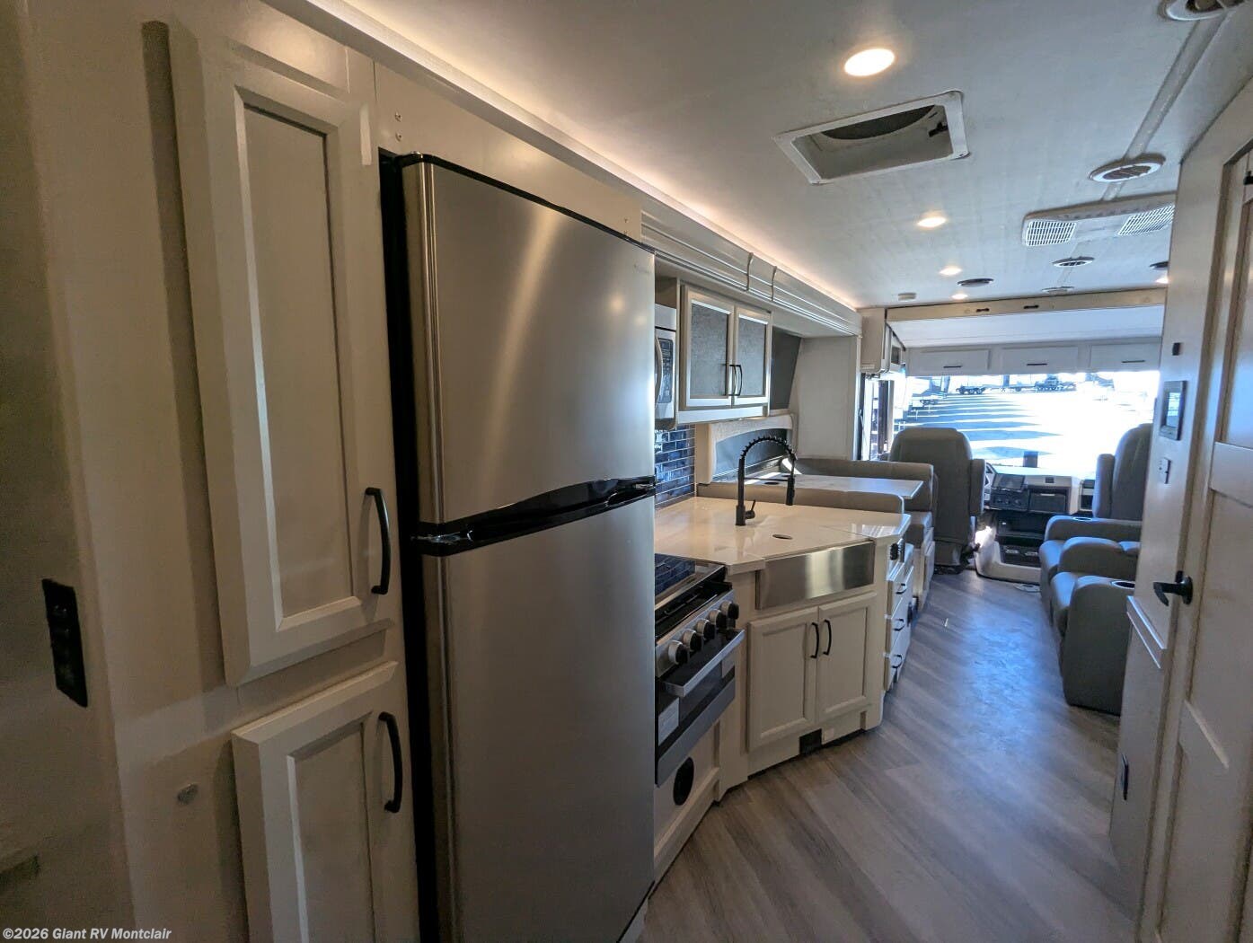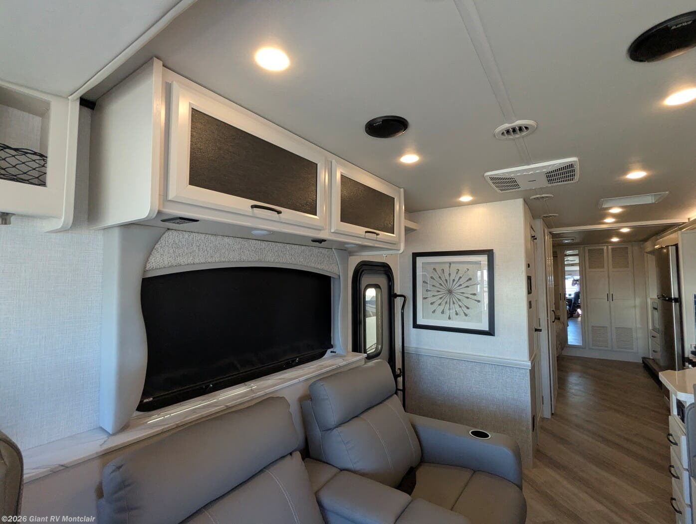 - Rear Living Layout with opposing slides, abundant seating, panoramic windows, and an entertainment center — creating a relaxing space for lounging or gathering after a long drive.