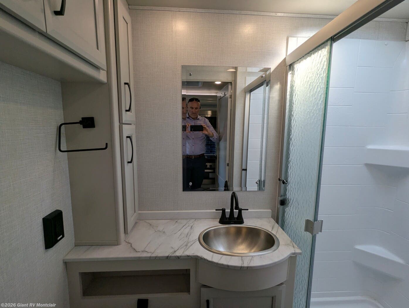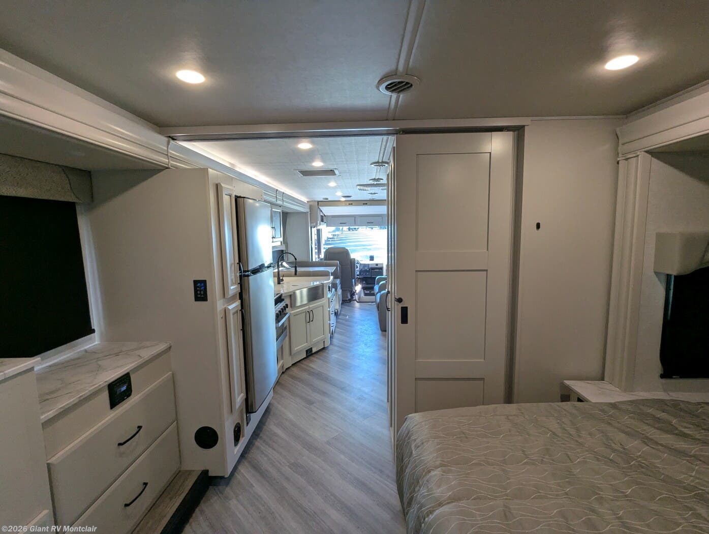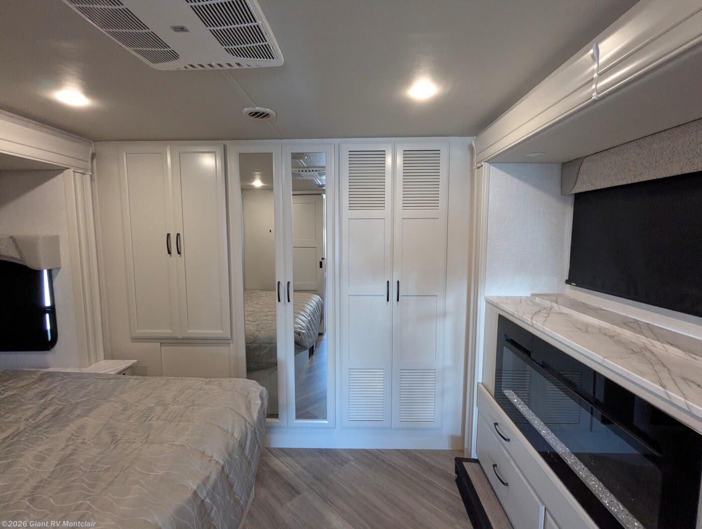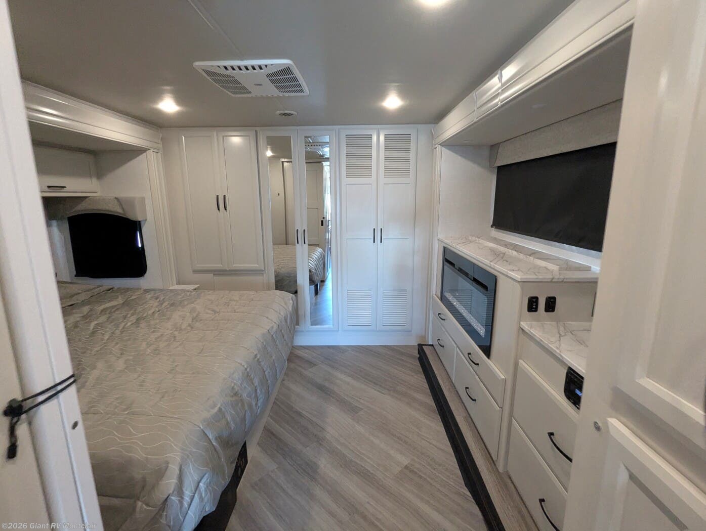 - Private Bedroom & Full Bath including a comfortable king-size bed, wardrobe closets, linen storage, and a full bath with shower — designed for everyday comfort on the road.