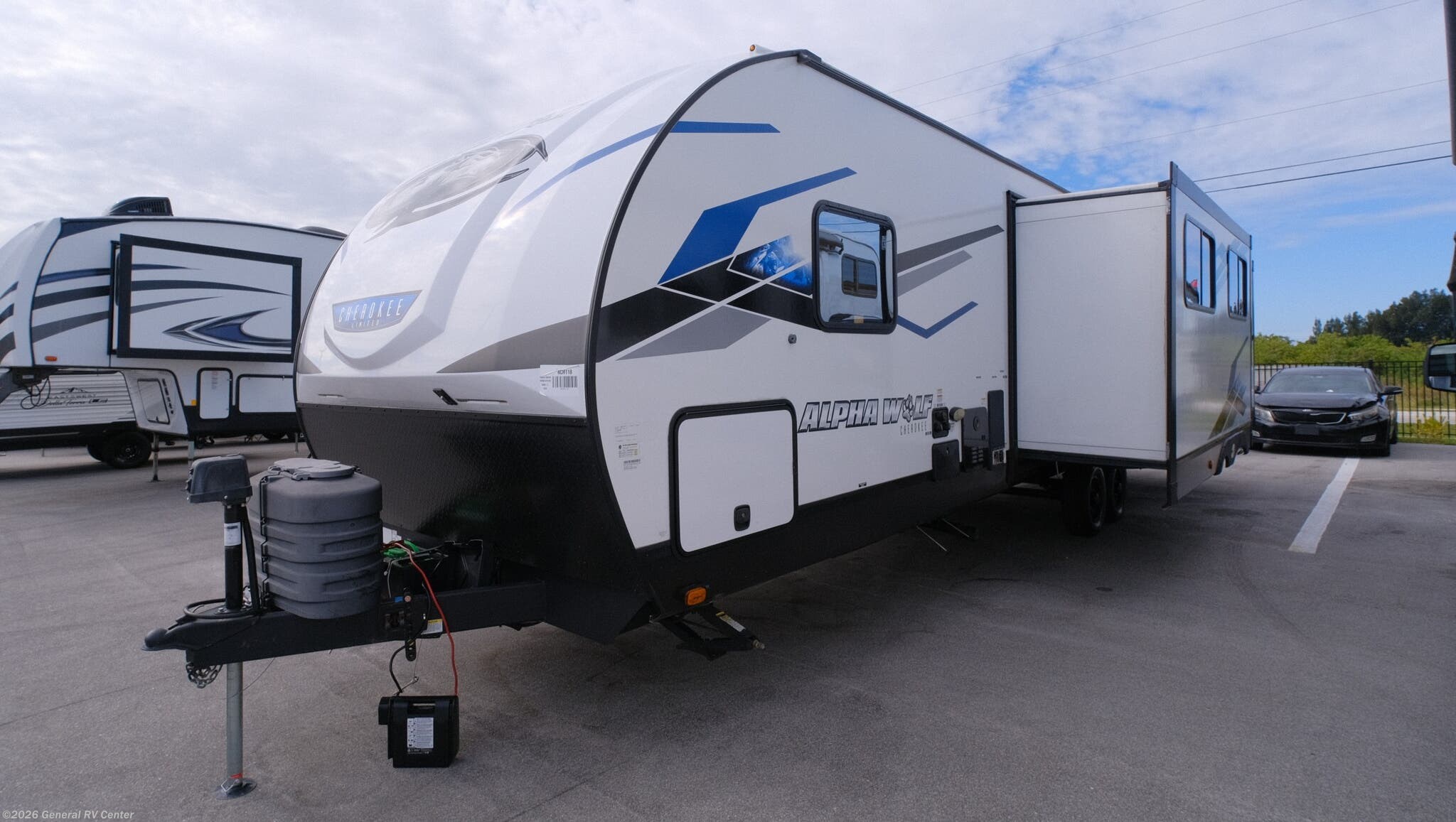 Discover the 2024 Forest River Cherokee Alpha Wolf 33BH-L, a spacious haven on wheels designed to elevate your travel experiences. This impressive RV is crafted for families and groups, comfortably sleeping up to 10 people with a cozy queen bed and multiple convertible sleeping areas. The bunkhouse is a dream for kids or guests, offering two bunks and a welcoming space for everyone to unwind. The center kitchen is the heart of this RV, featuring a full-size electric refrigerator and a three-burner cooktop, perfect for preparing delicious meals on the road. The layout is thoughtfully designed to provide a seamless flow from the center living area to the bedrooms, ensuring comfort and convenience. With two slides, the interior feels open and airy, while the 20 ft. powered retractable awning extends your living space outdoors, perfect for enjoying a sunny day or a starry night. Ample storage solutions, including outside compartments, ensure you have room for all your gear. Whether you're embarking on a weekend getaway or a cross-country adventure, the Alpha Wolf 33BH-L is your ticket to unforgettable journeys. For more details, visit your nearest General RV dealership today!
