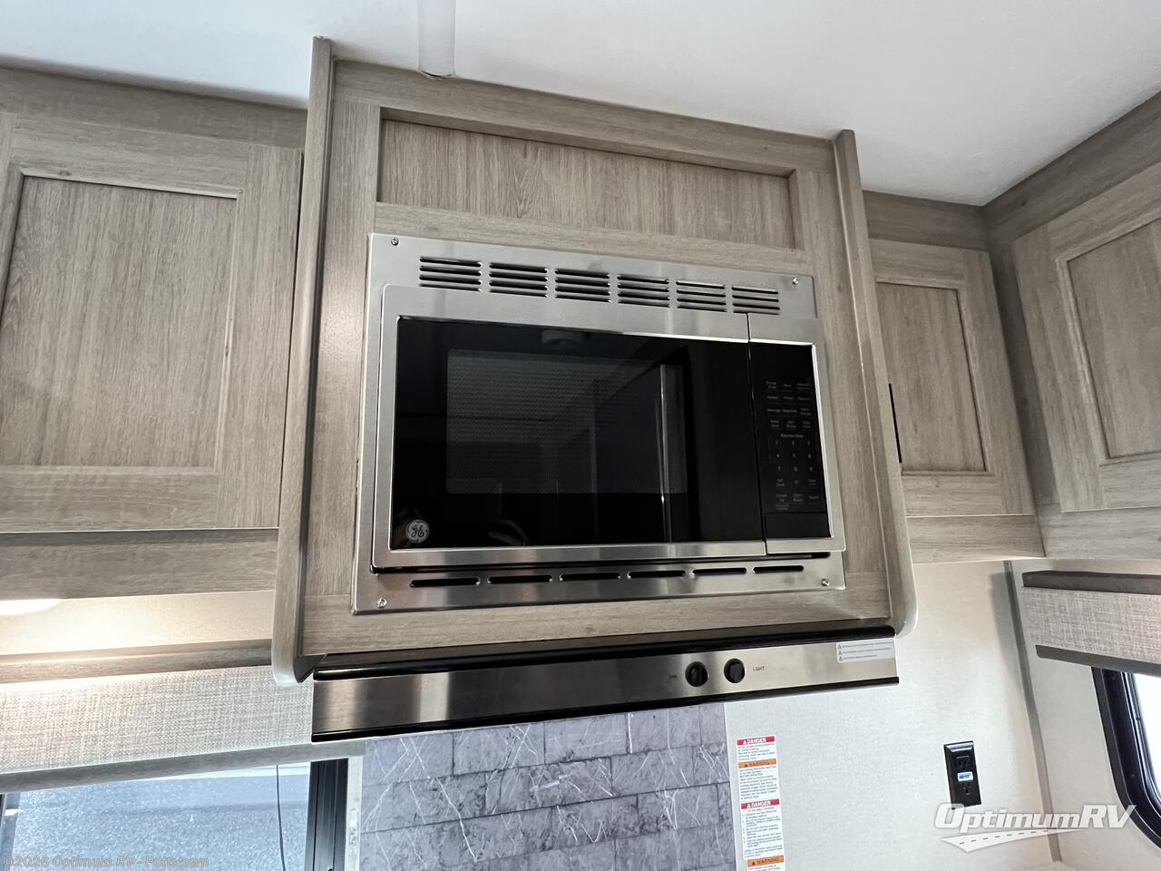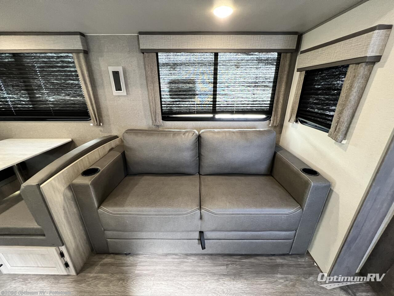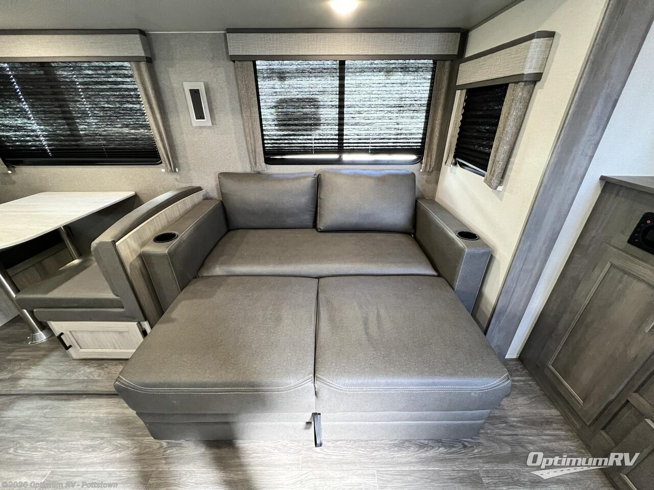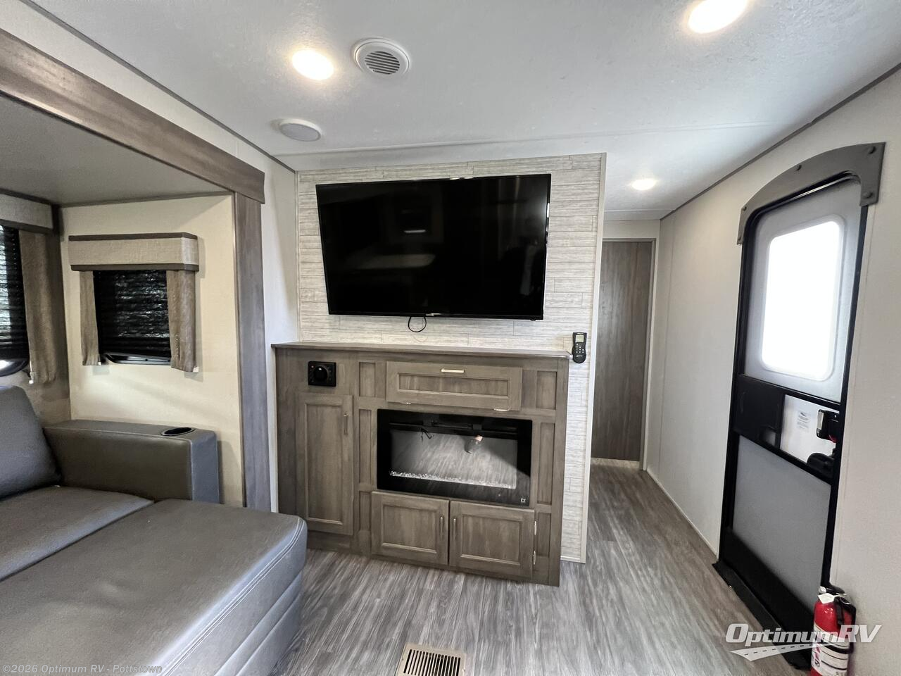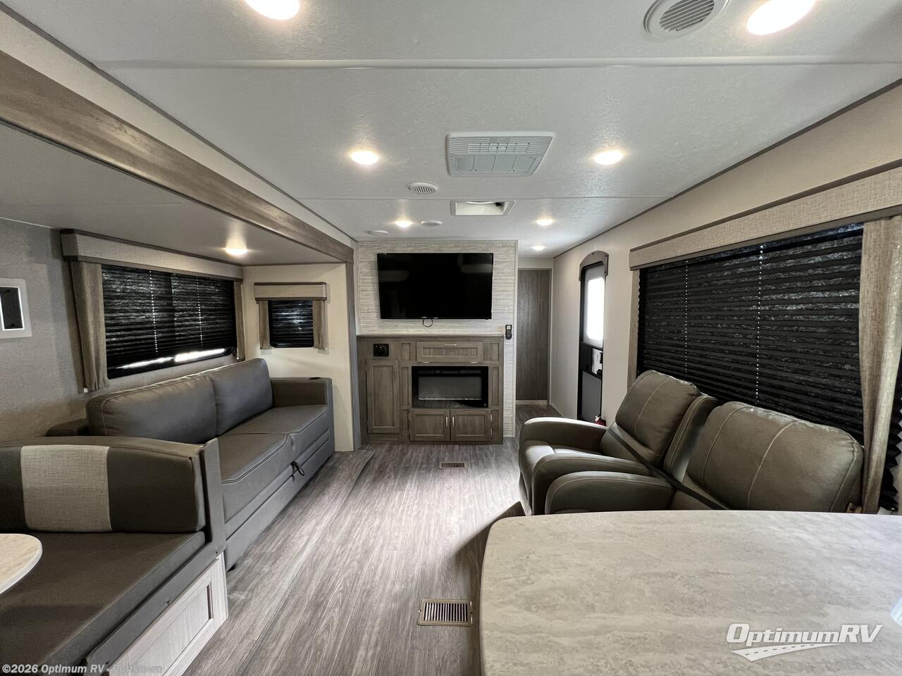 The chef will love cooking in the rear kitchen of this travel trailer! You will feel right at home in the front private bedroom with the 60" x 74" queen bed slide across from a dresser and a front closet that has an area prepped for an optional washer and dryer. There is an optional fireplace and entertainment center in the living area in by the two recliner lounge chairs and the 68" sofa next to the 45" booth dinette. Stay clean and fresh with the 36" x 30" shower pan with a skylight above for natural lighting as you get ready in the full bathroom. The 21' electric awning has multicolor lights for you to choose your favorite color as you enjoy a refreshing beverage from the mini fridge!