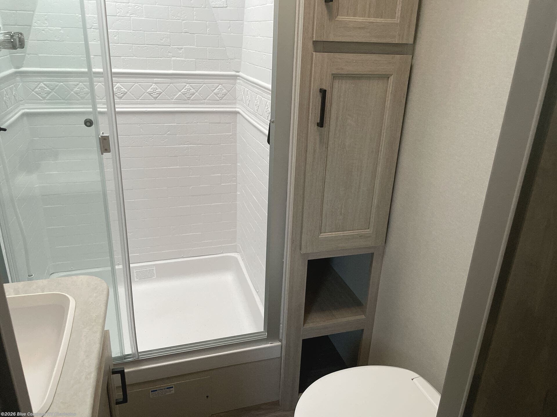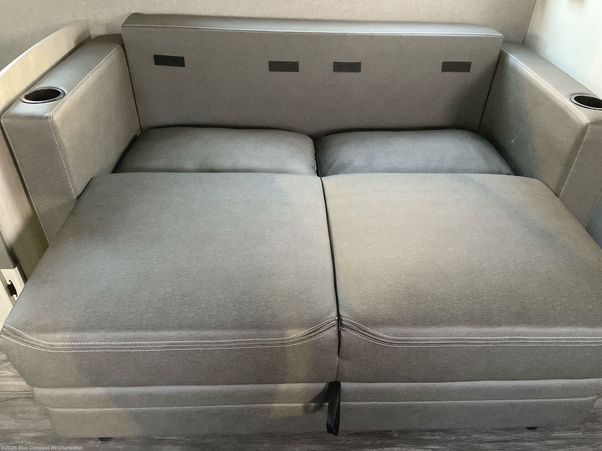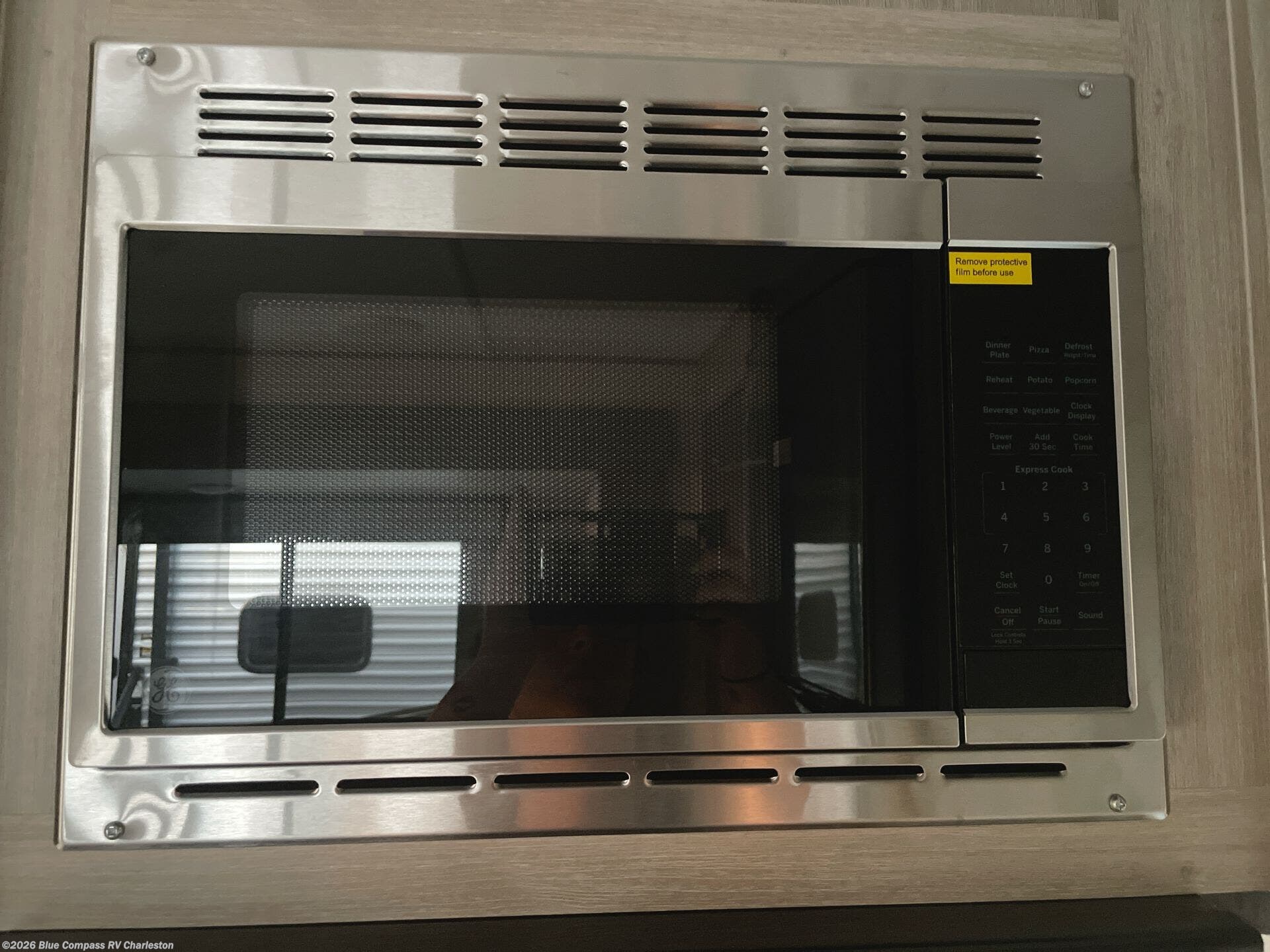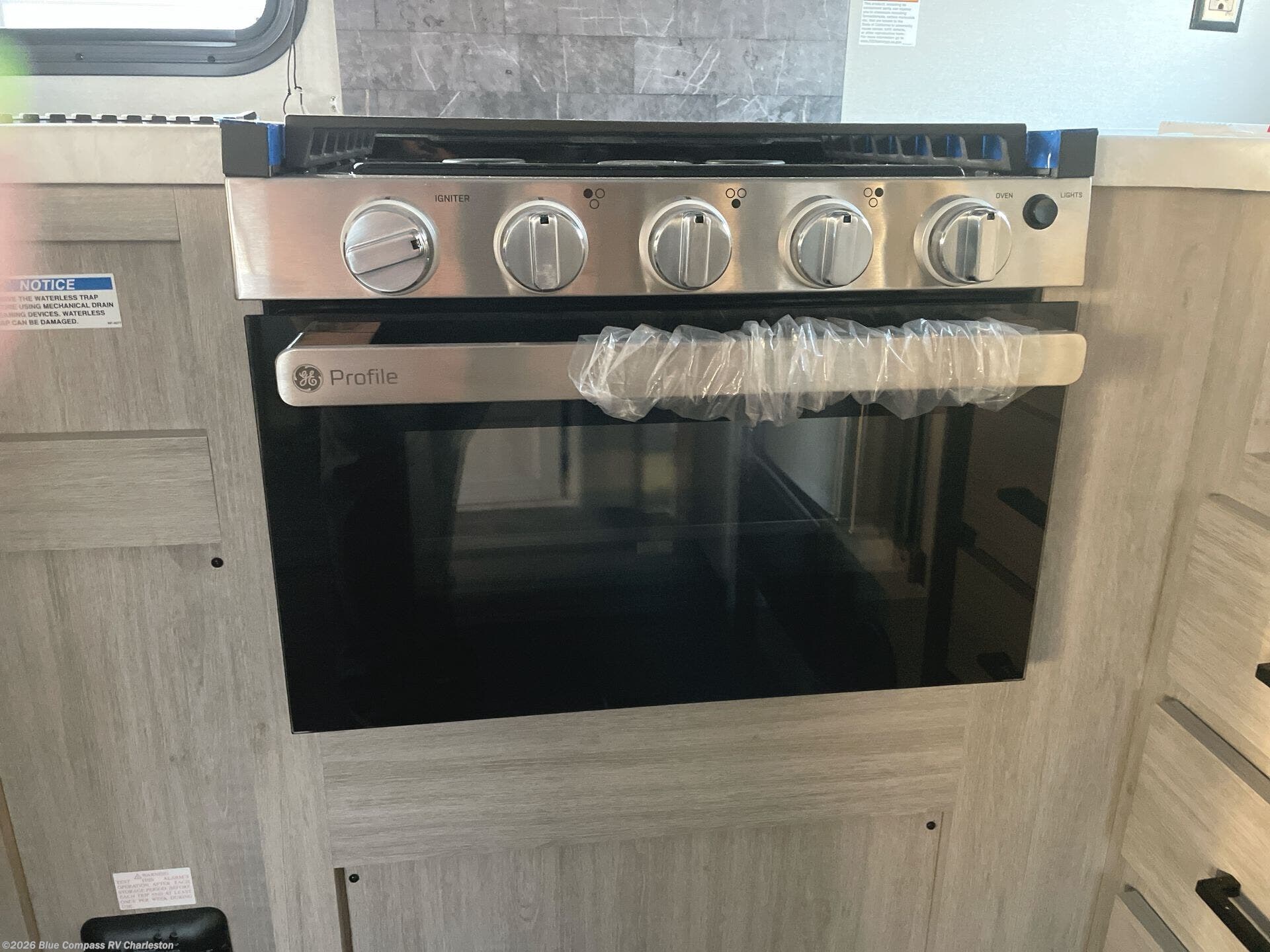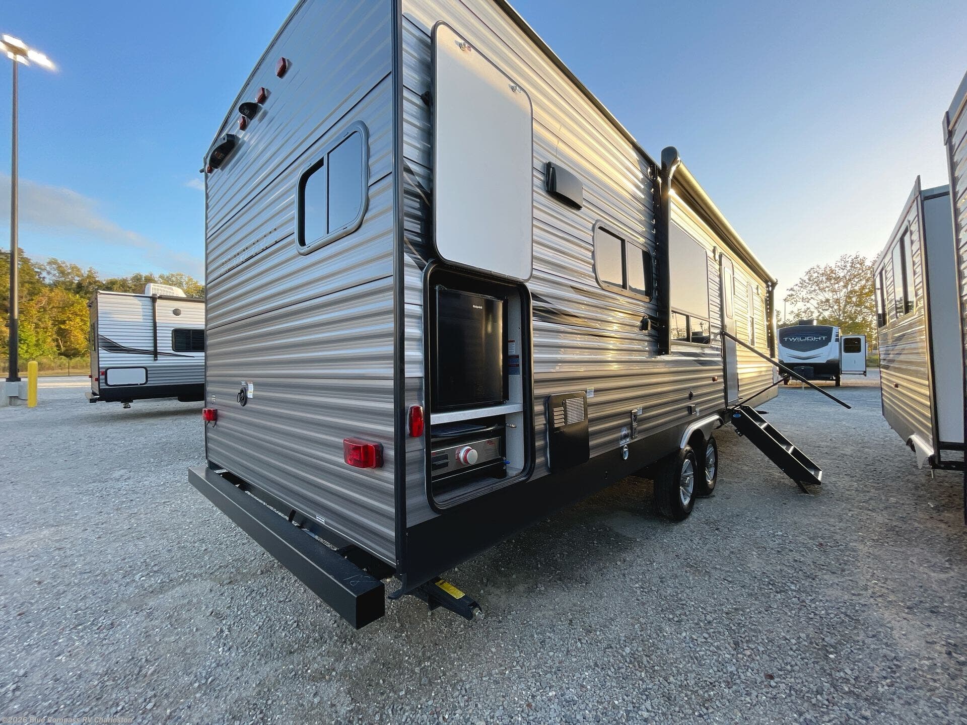 The chef will love cooking in the rear kitchen of this travel trailer! You will feel right at home in the front private bedroom with the 60" x 74" queen bed slide across from a dresser and a front closet that has an area prepped for an optional washer and dryer. There is an optional fireplace and entertainment center in the living area in by the two recliner lounge chairs and the 68" sofa next to the 45" booth dinette. Stay clean and fresh with the 36" x 30" shower pan with a skylight above for natural lighting as you get ready in the full bathroom. The 21' electric awning has multicolor lights for you to choose your favorite color as you enjoy a refreshing beverage from the mini fridge!