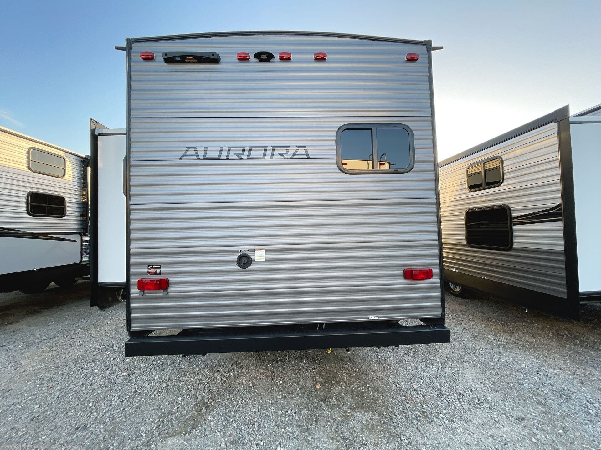 Comfortability, usability, and quality is what you will find in each one of these Forest River Aurora travel trailers, toy haulers or destination trailers! They are designed with a superior build and packed full with industry leading, functional, and distinctive standard features. SolidStep entrance steps and a Safe-T rail door assist on main entry door to help you safely enter and exit the unit. The diamond plate rock guard will protect your unit from road debris and the nitrogen filled radial tires, which keep their pressure longer, offer better fuel economy. You will also find upgraded JBL Elite exterior speakers outside, an electric awning with multicolor lights and remote, plus flush mount baggage doors for easy packing. The interiors are beautifully designed with a deep undermount farm style sink, stainless steel appliances, and linoleum flooring throughout which will be easy to clean. Come find your favorite model today!