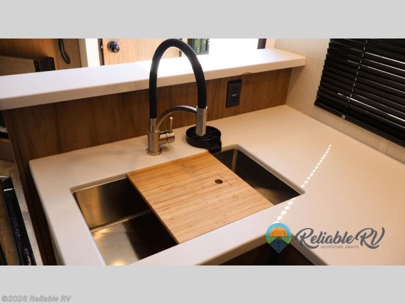 With any Campsite Reserve travel trailer by Forest River, you will enjoy comfort and convenience at every turn! These models feature the most storage in their class, along with the biggest windows in their class plus a mega pass-through storage so nothing gets left behind. Since they are built with a TimberStong UltraCore engineered superstructure, they will last for years to come, and the diamond plate on the front will help protect your unit from rock and debris on the way to your destination. Each model also includes a power awning with LED lights, a 100-watt solar package, and a sleek glass entrance door that will set you apart at the campground. You will love the interior amenities that make camping easier than ever, like the air fryer, Bluetooth radio, pull-out drawer under the dinette, and much more!