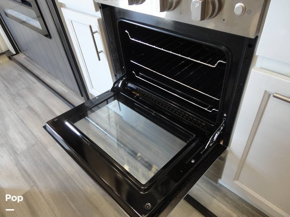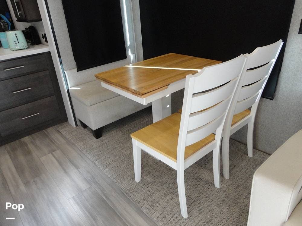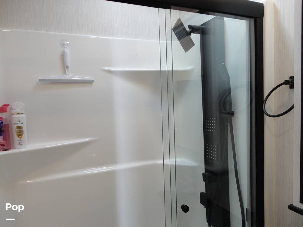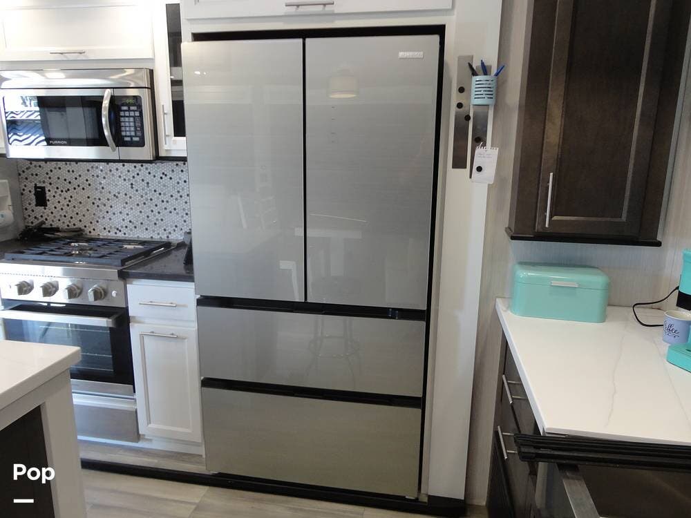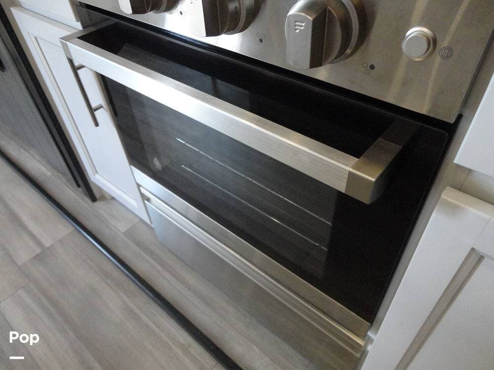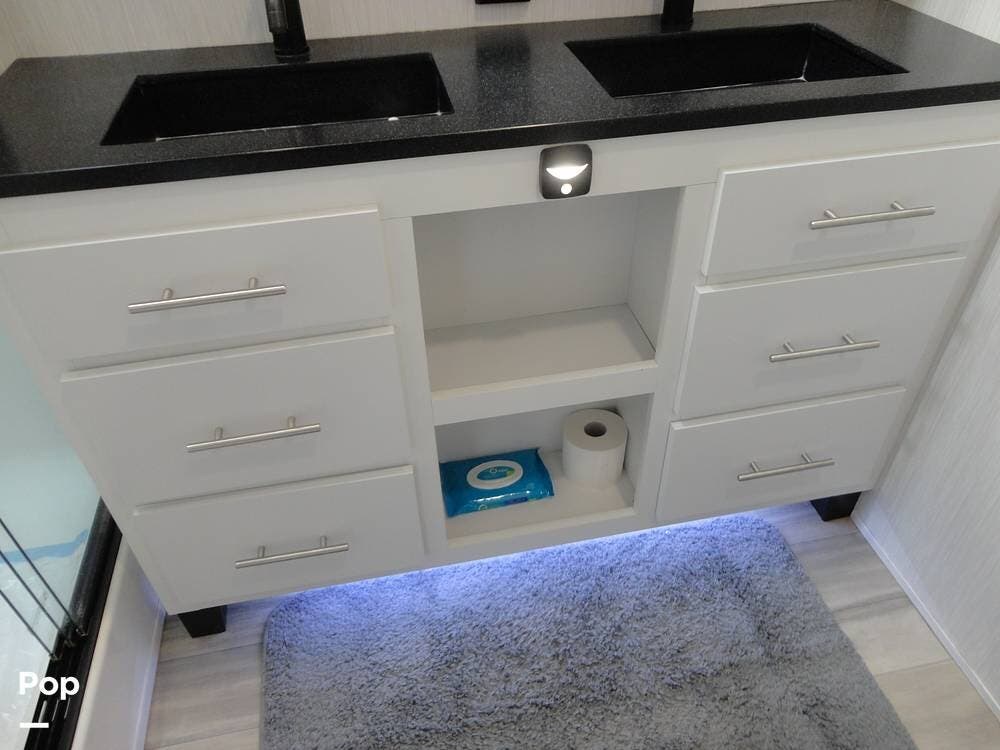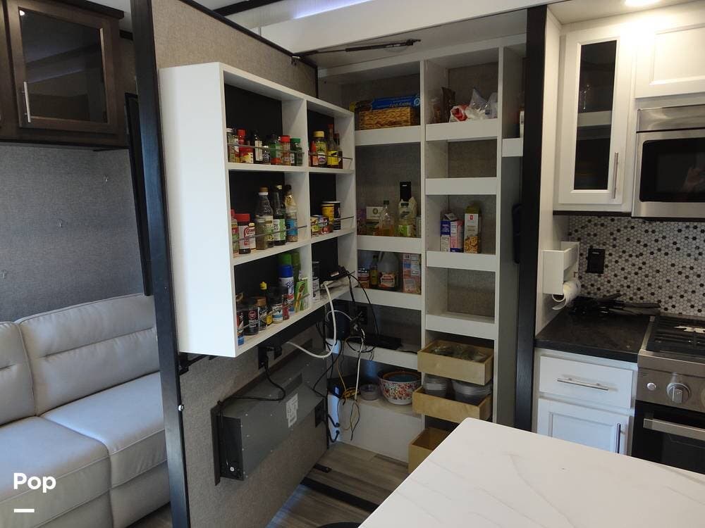 Seating consists a twin theater-style recliners and a sofa that also converts to a sleeper. Comfort is key with this 2024 Cottage, as the seller has added Micro Air upgrade that lets you control the interior temperature from your your phone. Turn on the heat or the air conditioning from anywhere.