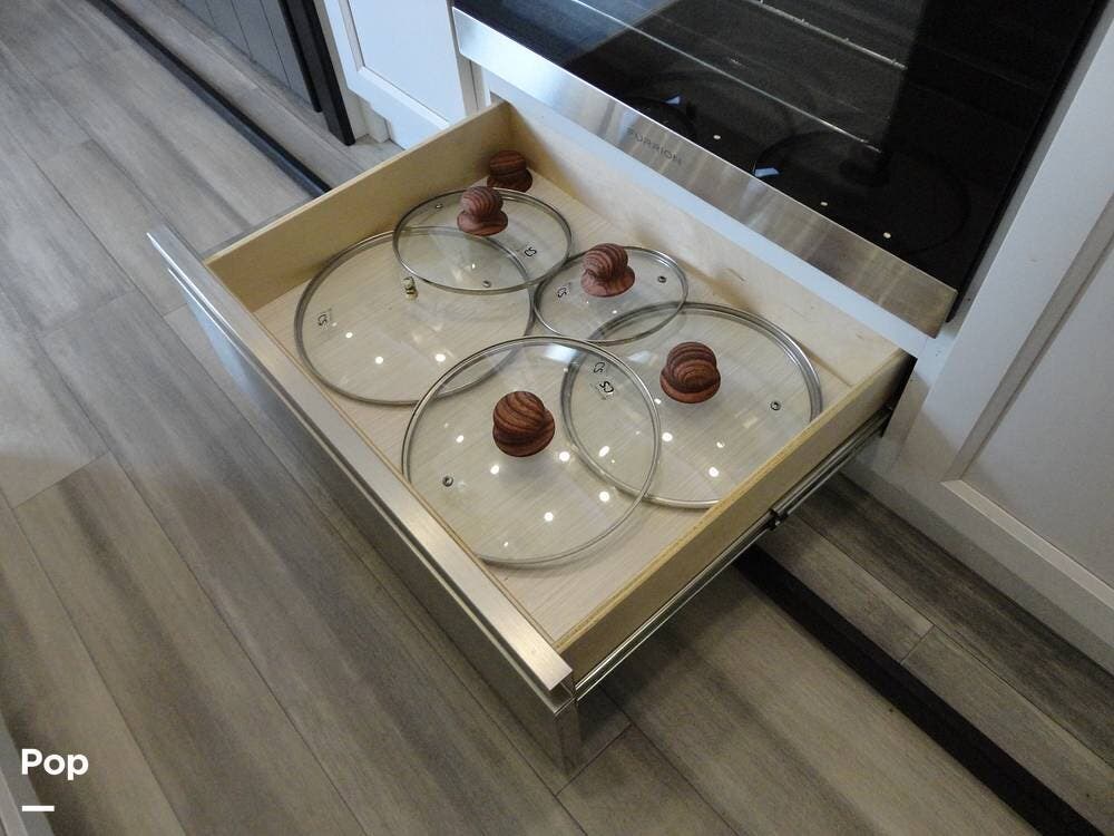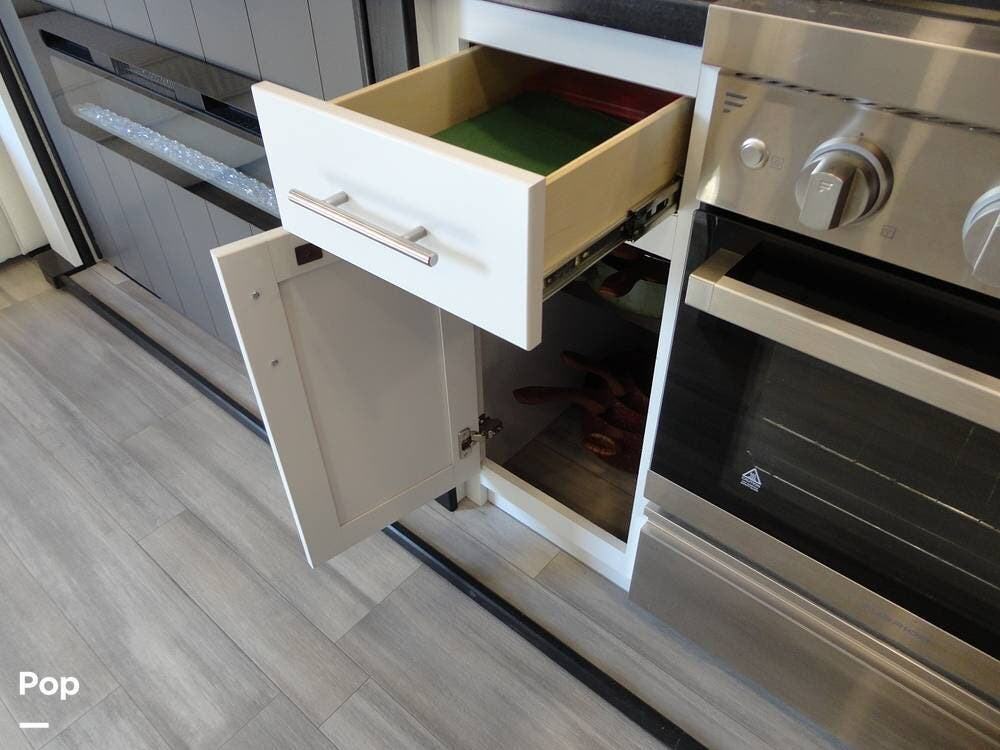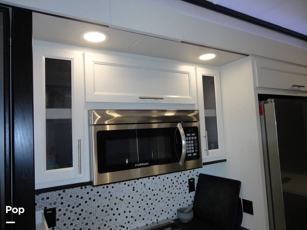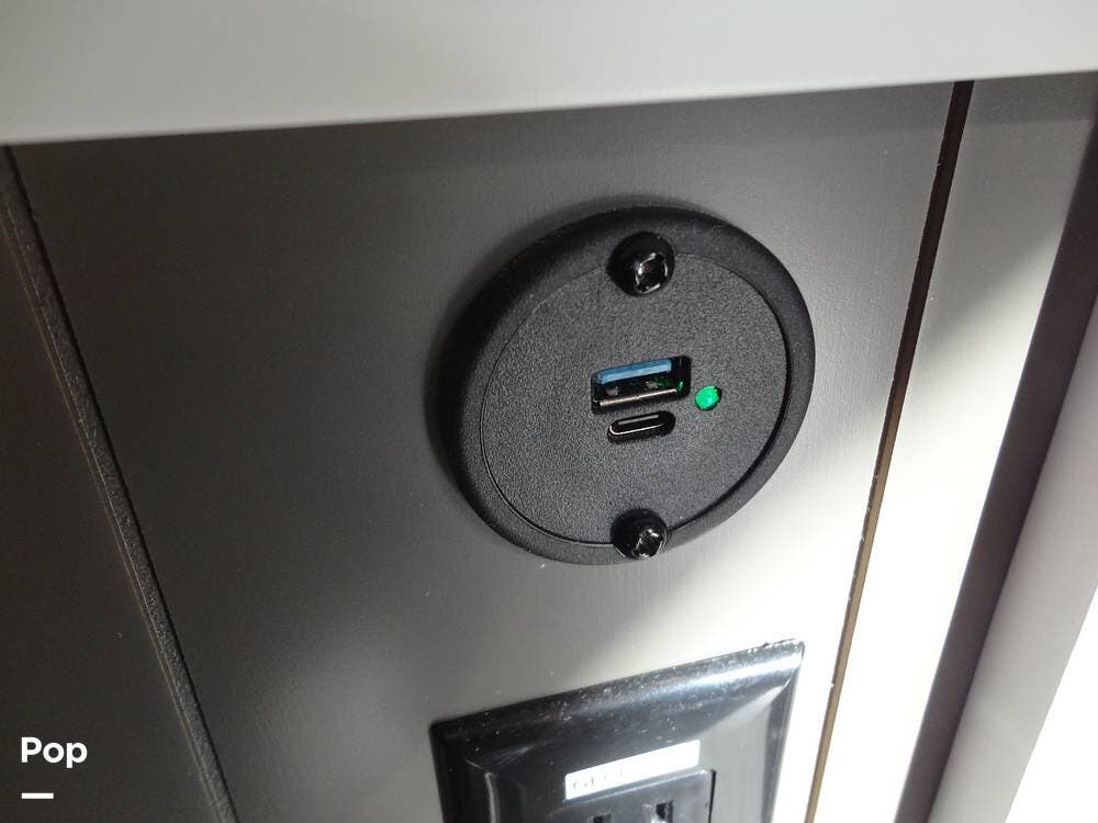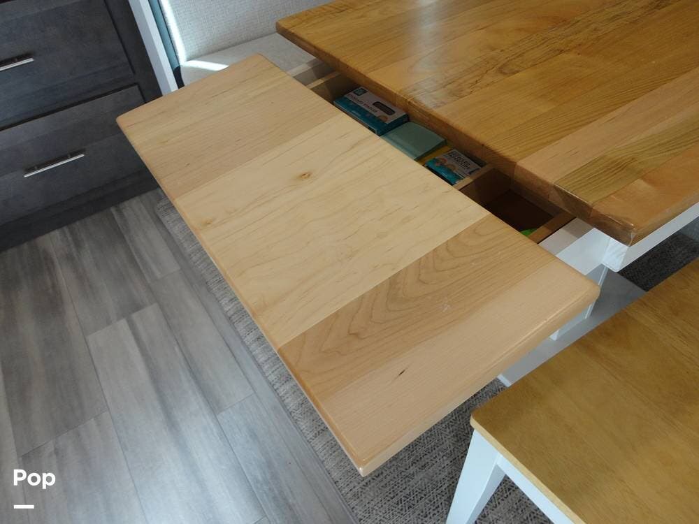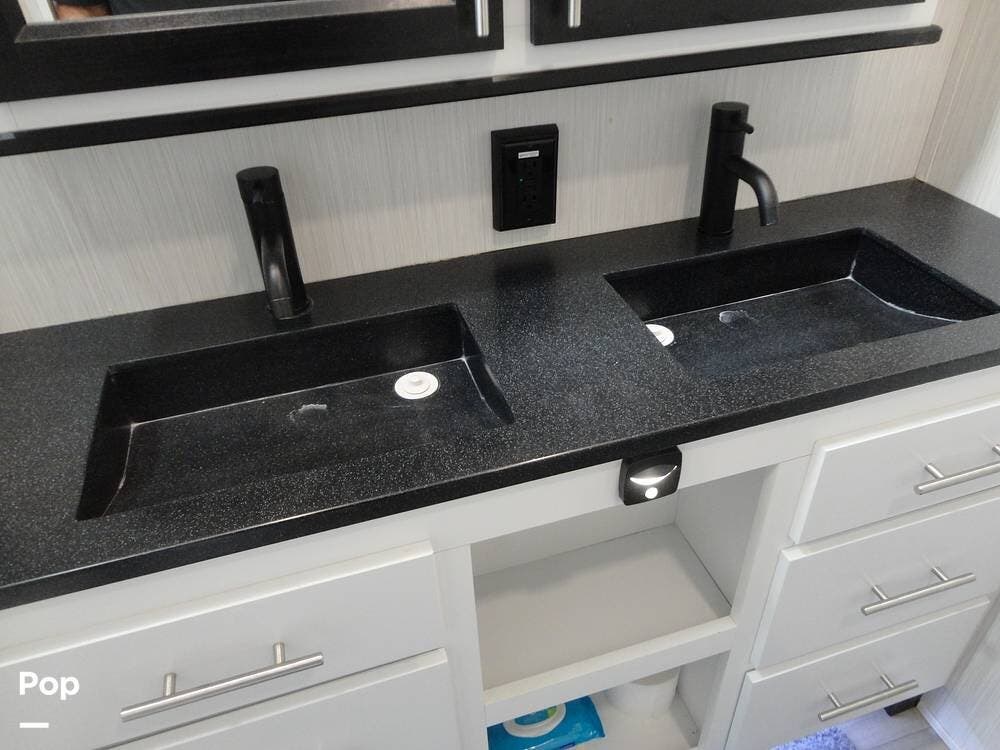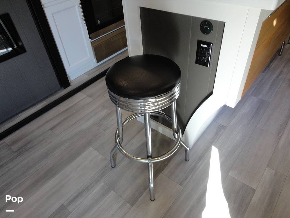 Seating consists a twin theater-style recliners and a sofa that also converts to a sleeper. Comfort is key with this 2024 Cottage, as the seller has added Micro Air upgrade that lets you control the interior temperature from your your phone. Turn on the heat or the air conditioning from anywhere.