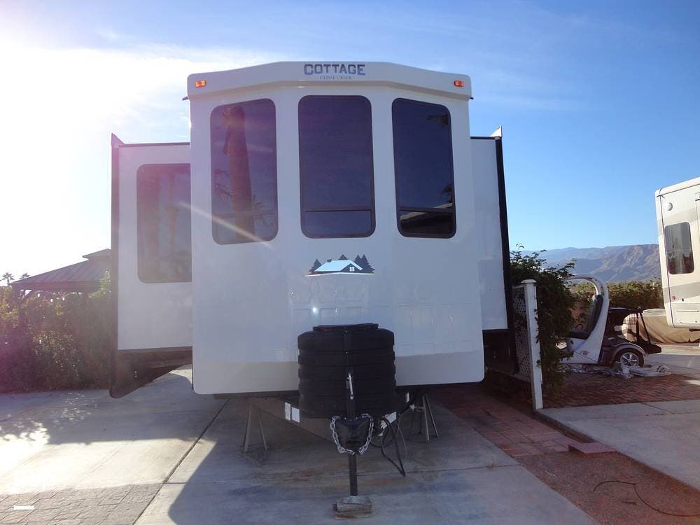 This Cottage 40 CFK2 features three slide-outs to expand and open up the interior space.