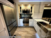 If you need more sleeping or storage space, this destination trailer is the one for you! There is a front covered porch with sliding glass doors that enters in to the front living area. Here, you'll enjoy relaxing on the sectional hide-a-bed sofa across from the entertainment center and fireplace. The spacious bar top with two seats will provide a place to dine, and the middle kitchen is any chef's dream with its two pantries, spacious 20 cu. ft. 12V refrigerator, and plenty of counter space! When you're ready for your own space, you can retreat to the rear bedroom where you'll find a king bed slide out, a wardrobe, a dresser, drawers, and even washer and dryer prep. The comfort doesn't stop there! There is also a loft above the full bath that includes a ladder and a mattress, so you can use this space for more sleeping or storage space!