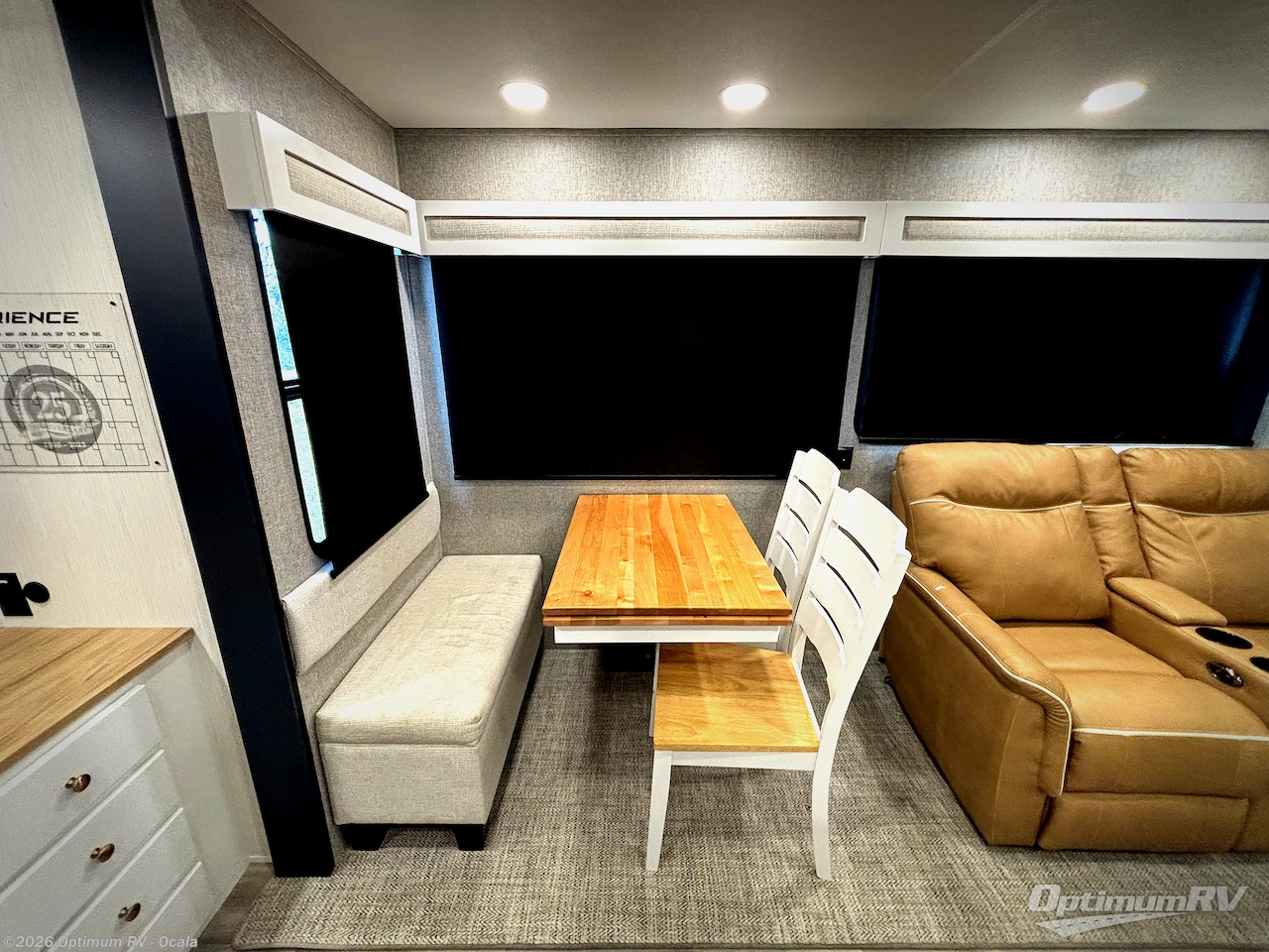 With any Cedar Creek Experience fifth wheel by Forest River, you will bet met with luxury features both inside and out! The True Gelcoat exterior is the best of the best in exteriors and the 3M bonded sidewalls will hold up over years of use. Each model includes Lippert 7,000 lb. axles with ABS brakes, Road Warrior suspension, plus TST tire pressure monitoring system to make towing that much easier. You will also find a 200 watt solar panel outside, along with a heated front storage compartment, a Nautilus P4 multi-function panel with an outside shower, black tank flush, and 12V battery disconnect, plus many more exterior conveniences. The interior will have you feeling like you haven't left home with vinyl floor coverings, Ashley furniture power theater seating, a cozy fireplace, a large bath counter, and the list of comforts goes on! Each model is also pre-wired for satellite to the roof, and you're sure to never go bored with a Smart TV in the living room and an added bedroom TV!