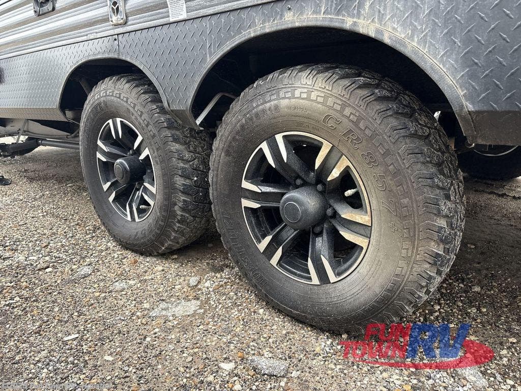 Enjoy comforts of home wherever you decide to roam in a Timberwolf destination trailer by Forest River. The seamless roofing membrane with heat reflectivity and power gear frame technology provide a durable foundation to your RV. You will also appreciate the exclusive solar thermo controlled reflective tinted safety glass windows, tire pressure monitors, and an on-demand tankless water heater to make extended stays easier than ever. Inside, the night shades will provide your crew with privacy, while the LED lights illuminate your space. There are also light filtering sheer shading premium zebra blinds, along with a premium bedding ensemble and comforter, USB charging stations, a supersized central A/C unit, and many more comforts!