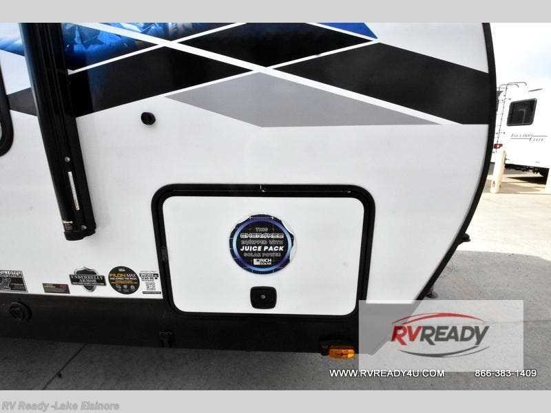 With any Cherokee Alpha Wolf travel trailer by Forest River you'll enjoy outstanding amenities, quality construction, and an affordable price. Each model features a "ToughBend" rigid skirt metal design, 5/8" tongue and groove plywood floor decking, and a "SuperTruss" roof structure that will hold up through years of camping memories. There is a "blackout" kitchen appliance package indoors, along with an LED interior lighting package, a 15,000 BTU quick cool central air conditioning, and many more comforts. These travel trailers include a utility center convenience light so you can easily check tank levels, and the outdoor TV prep means you can bring along your television for the big game. The Limited Package, Weather Guard Package, and Convenience Package include additional features found on select models, and there available options that can be added to further customize your Cherokee Alpha Wolf!