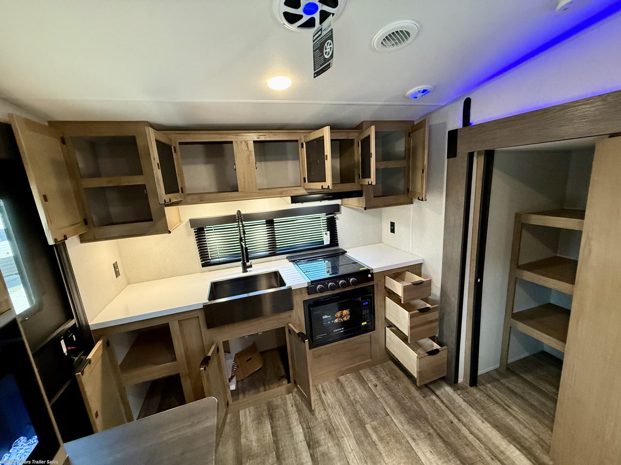 Your camping memories will be unforgettable in this 2024 Forest River Cherokee Black Label 235MBBL. Be a part of the Forest River family with this 2024 Forest River Cherokee Black Label 235MBBL. This rig sleeps 6, so it makes the perfect family RV. The one slide allows for easy setup and just enough extra space inside. The fridge, oven, stove make the perfect combo for eating well on the road. With the booth dinette, you’ve got the perfect place for family meal times. You’ll wake up feeling well-rested for your adventures in your queen bed. The heating option will keep your travels at the perfect temperature. Go longer without filling up thanks to the 40 gallon fresh water tanks. Outside, you’ll find awning, backup monitor, exterior speakers, external shower, leveling jacks, outside kitchen, power roof vent, skylight, slideout and spare tire kit. Make sure kids don’t track mud inside with the outside shower. The outside kitchen allows you to enjoy the Great Outdoors at meal time.