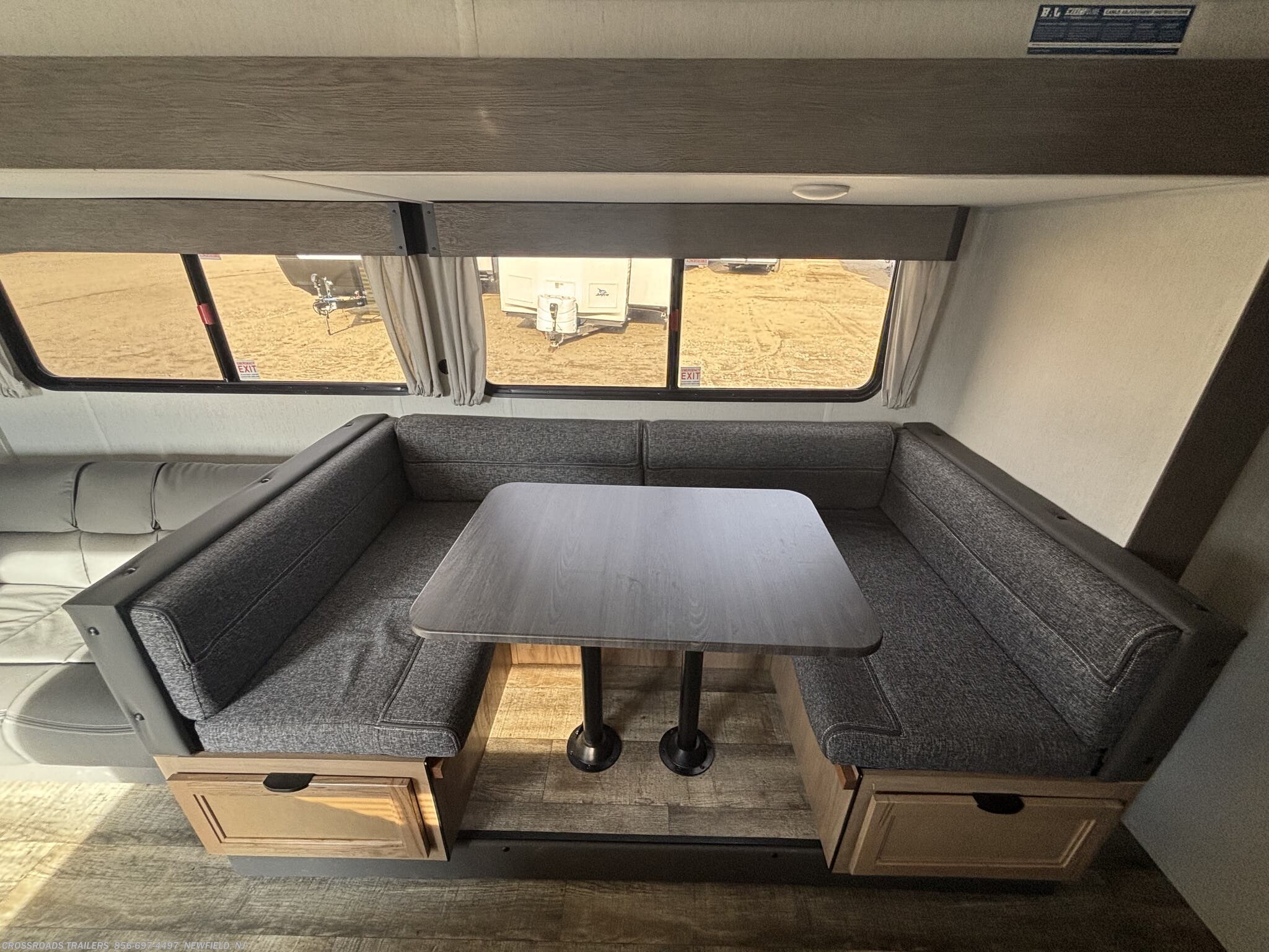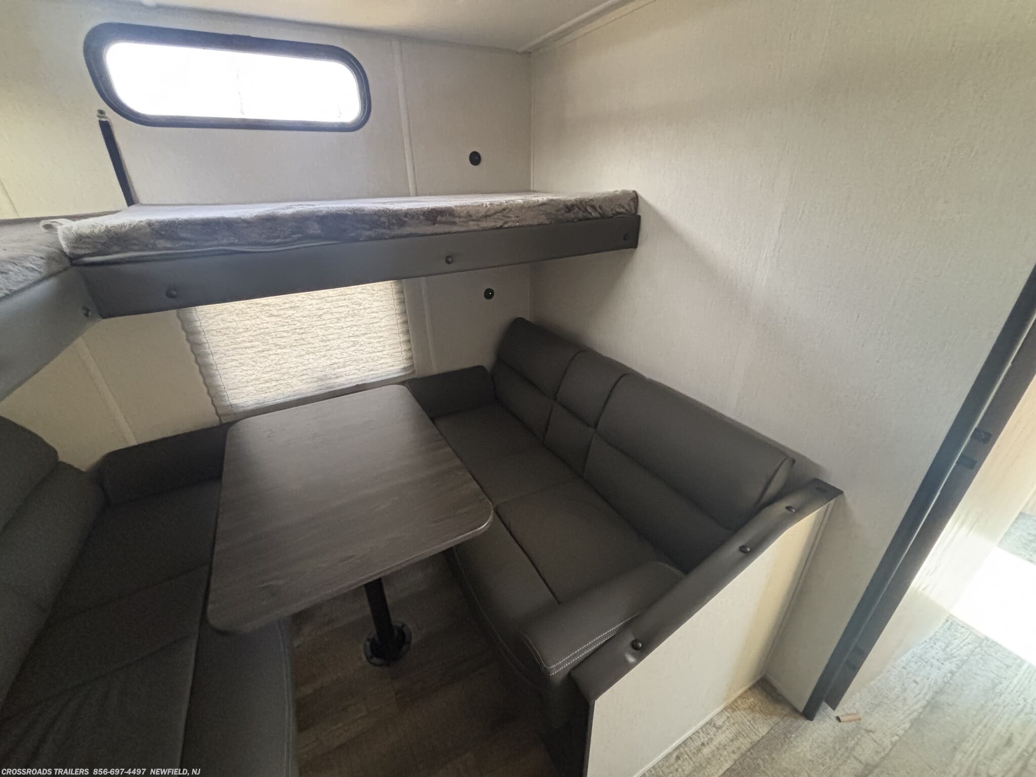 Inside the 29NM, you’ll find a thoughtfully designed layout that prioritizes family time. The bunkhouse provides a private sleeping zone, while the main living area features a cozy fireplace and a versatile dinette arrangement. The queen bed offers a comfortable retreat, and the U-shaped dinette can convert into additional sleeping space for guests. With a single slide-out, the interior feels open and inviting without compromising towing stability.