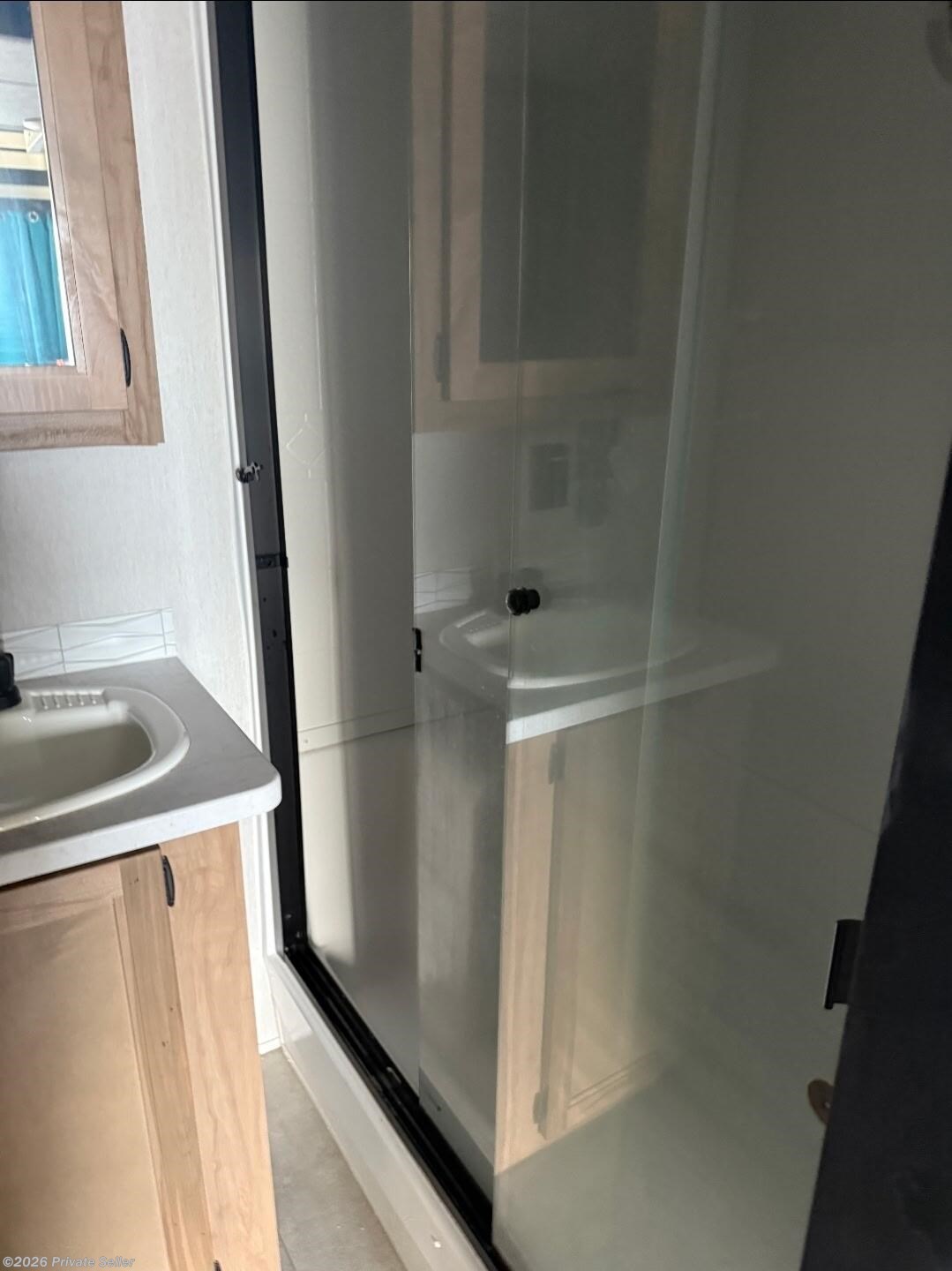 Retreat to the cozy bedroom where comfort reigns supreme, complete with a plush bed and ample storage to keep your belongings neatly organized. The thoughtfully designed bathroom enhances your travel experience, equipped with a stylish shower, sink, and toilet for your convenience.